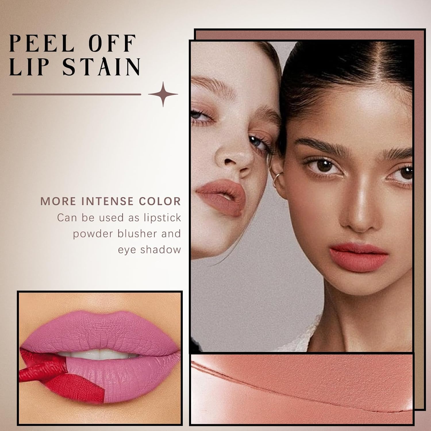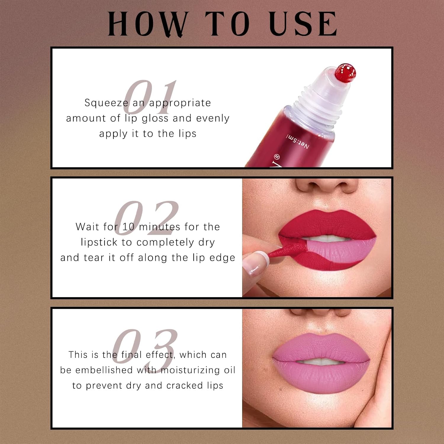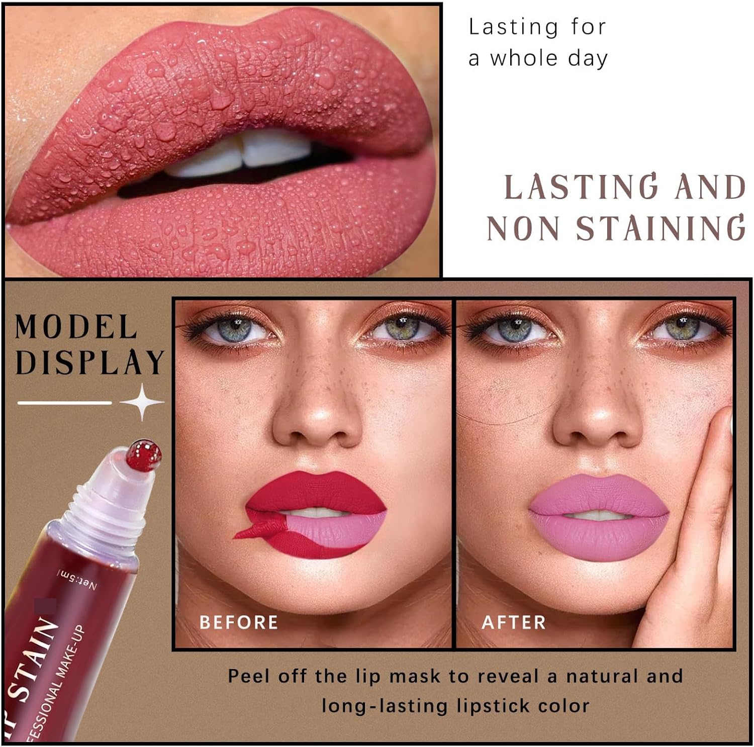 【هدية مثالية】يخلق ملمع الشفاه القابل للتقشير لونًا ناعمًا ورائعًا على الشفاه، مقاوم للماء والتقبيل، يدوم طوال اليوم، ويمكن استخدامه في العديد من المناسبات ويمكن تقديمه كهدية لأمك أو زوجتك.