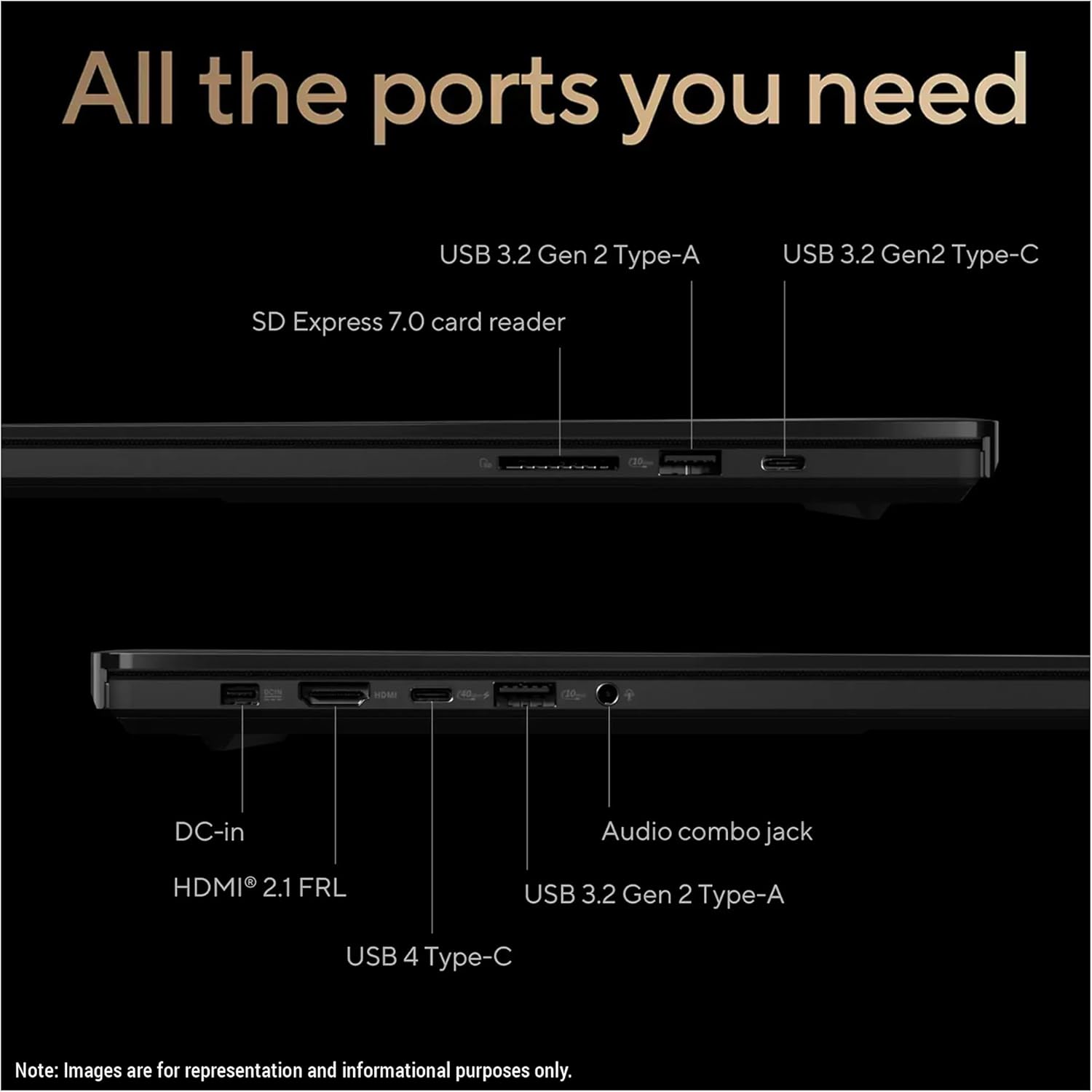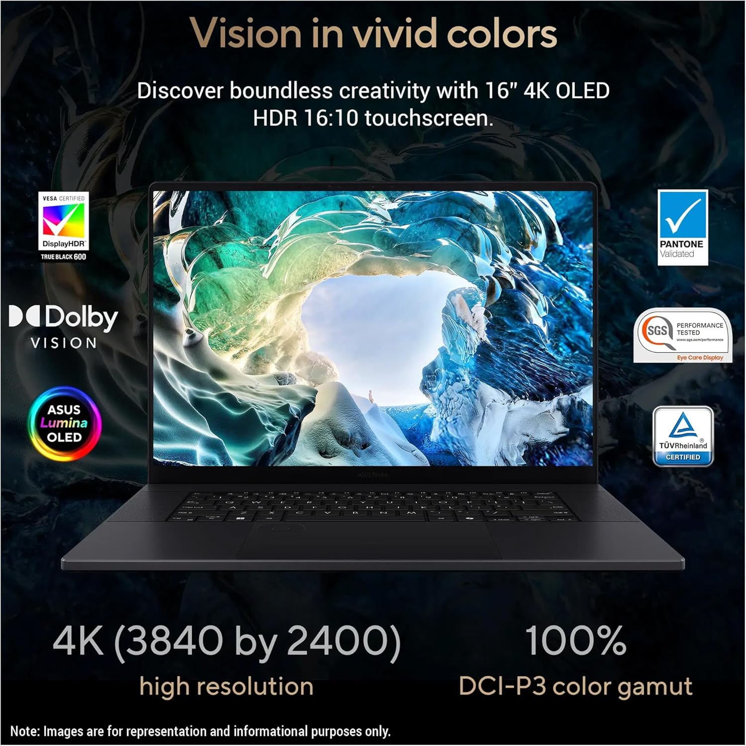 اسس لابتوب برو ارت P16 بمعالج AMD رايزن AI 9 HX 370 وذاكرة RAM DDR5 32GB وSSD PCIe 2TB وشاشة لمس 4K مقاس 16 انش (3840×2400)، انفيديا جي فورس RTX 4060، W11 هوم