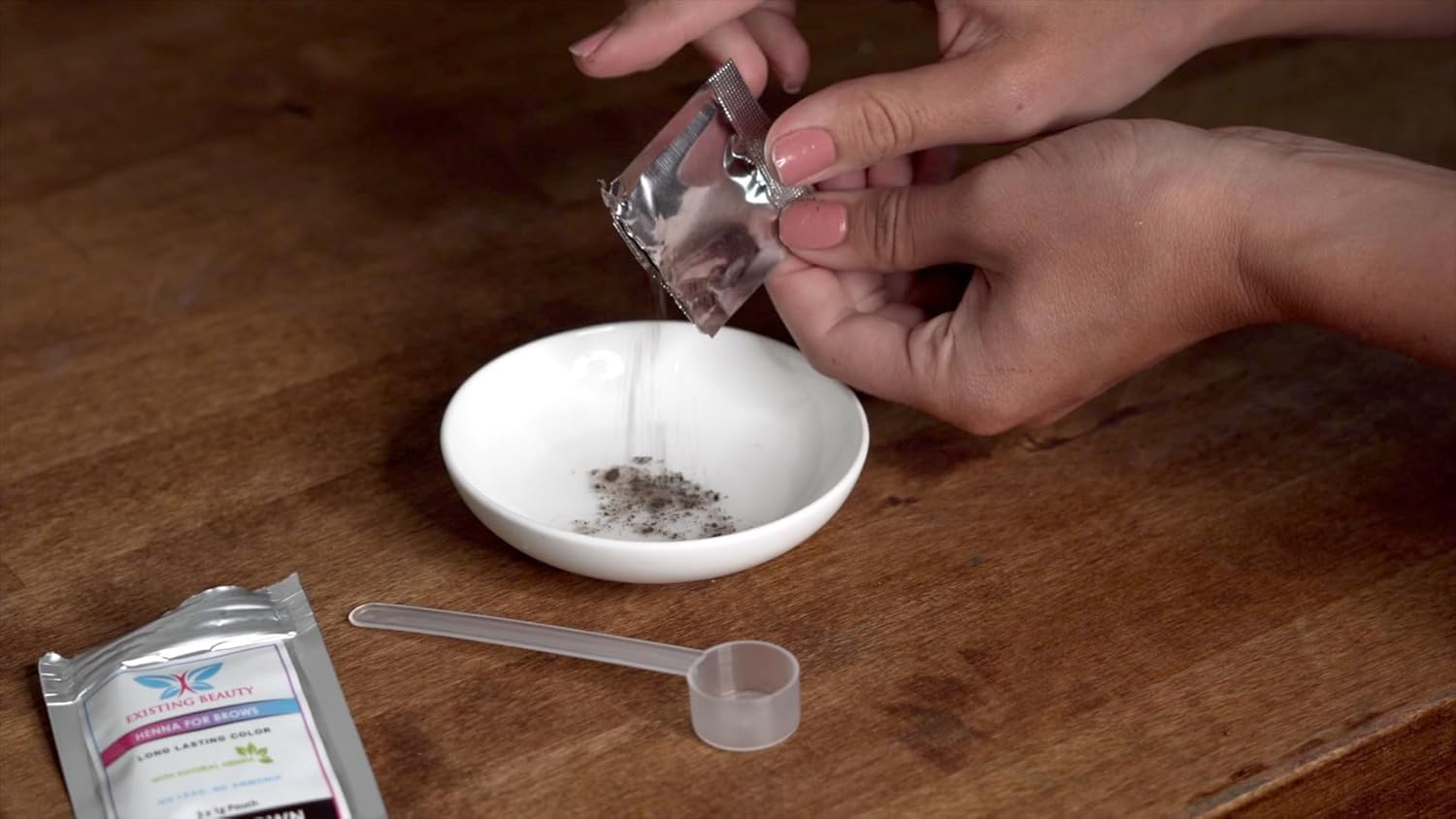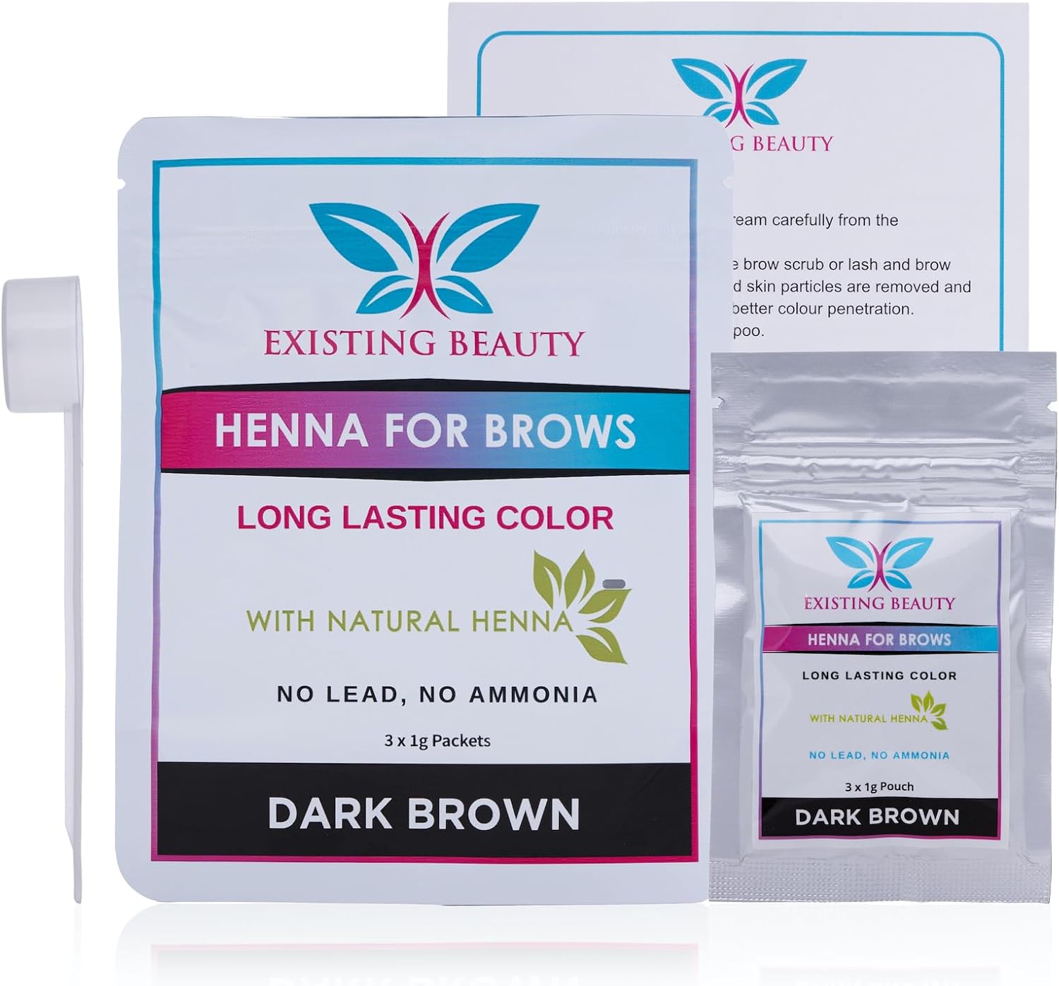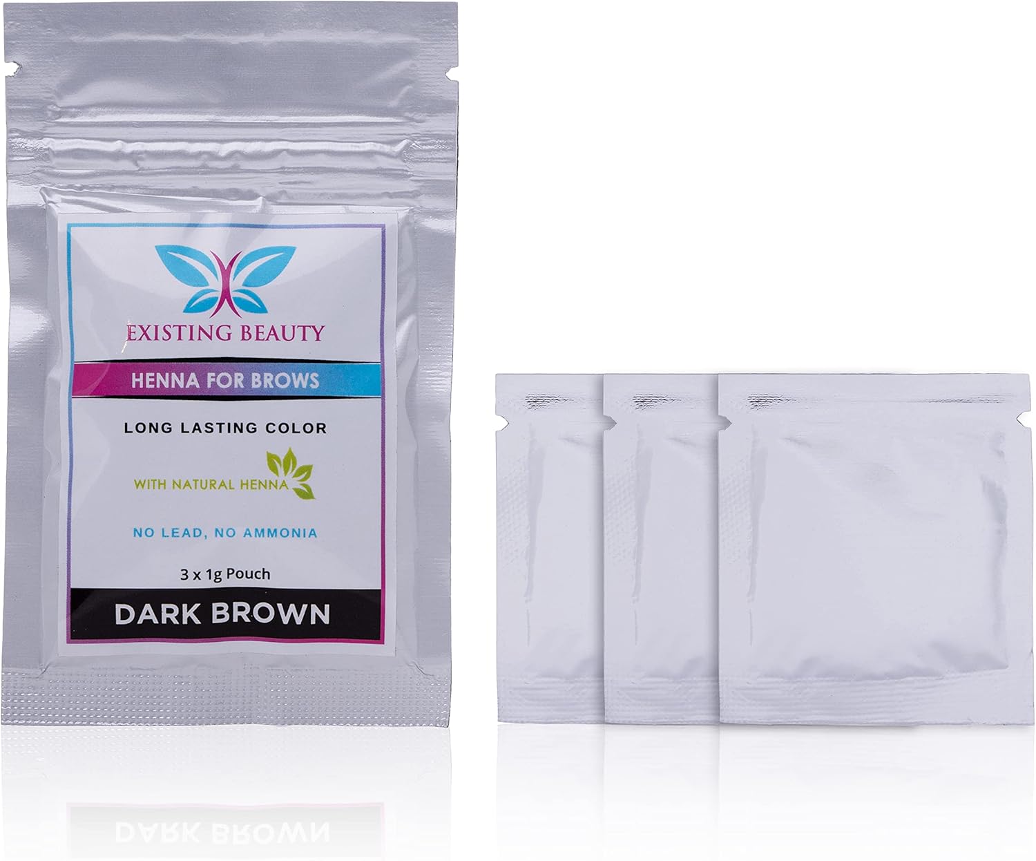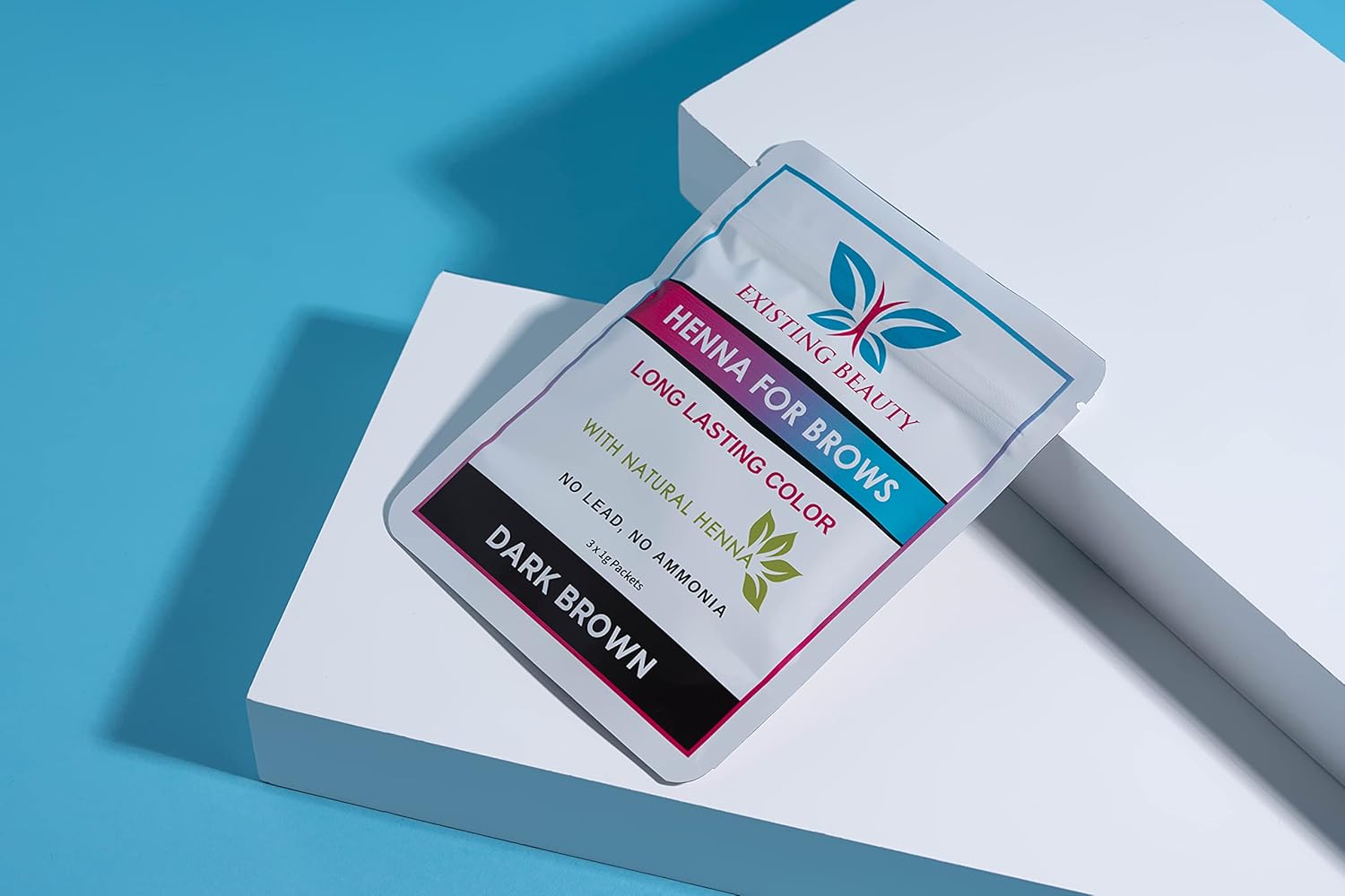 اكزيستنج بيوتي حناء حواجب بلون بني داكن – مجموعة حناء احترافية للحواجب تتضمن تعليمات الاستخدام ووعاء خلط 3 × 1 غرام عبوة لصبغ الحواجب من