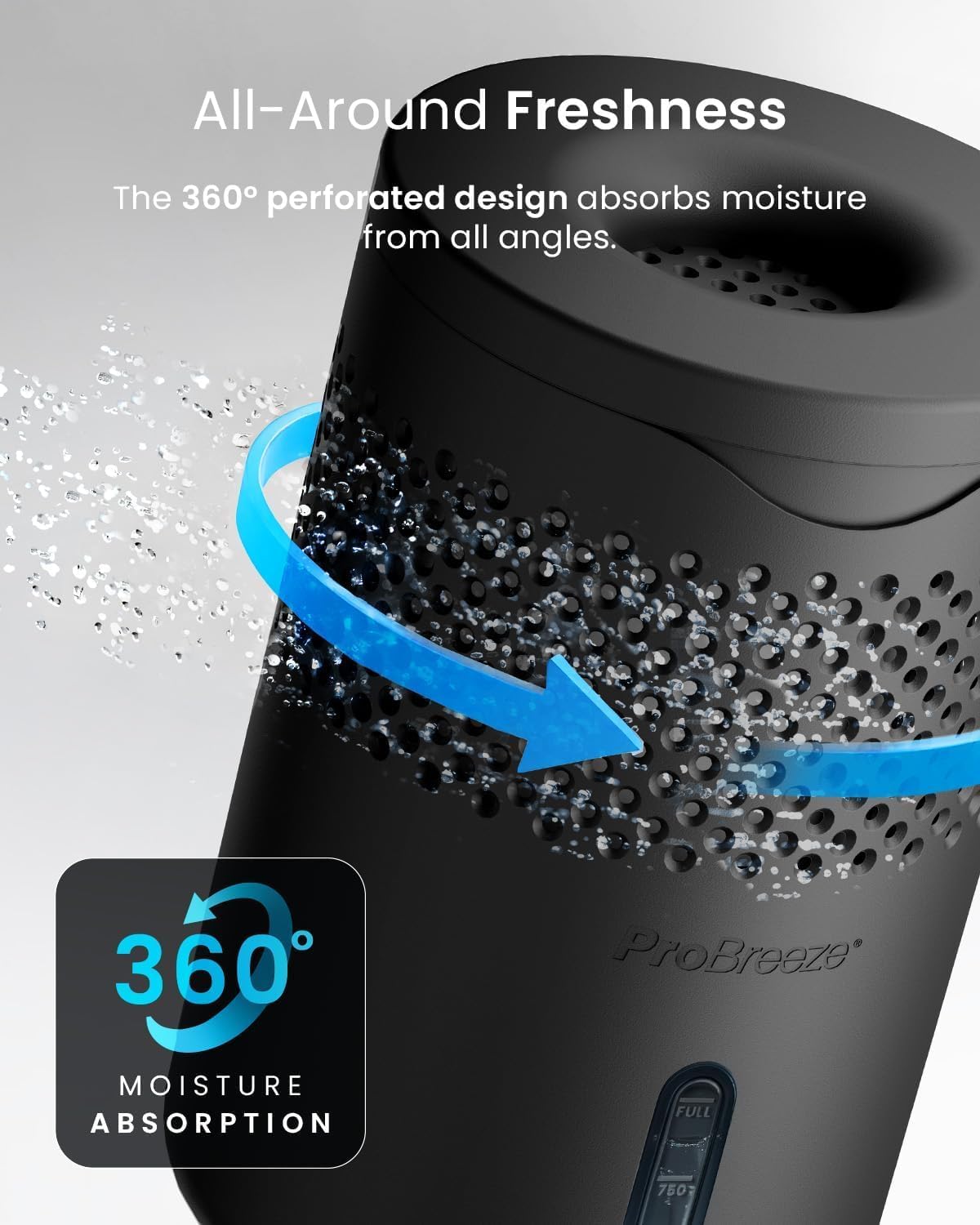 برو بريز مزيل الرطوبة من اوسمو – ممتص رطوبة صامت وقابل لاعادة الملء للرطوبة والتكثيف في المنزل وغرفة النوم وخزانة الملابس والسيارة – مزيل قوالب الحمام مع قرص قابل لاعادة الملء 700 غرام – اسود