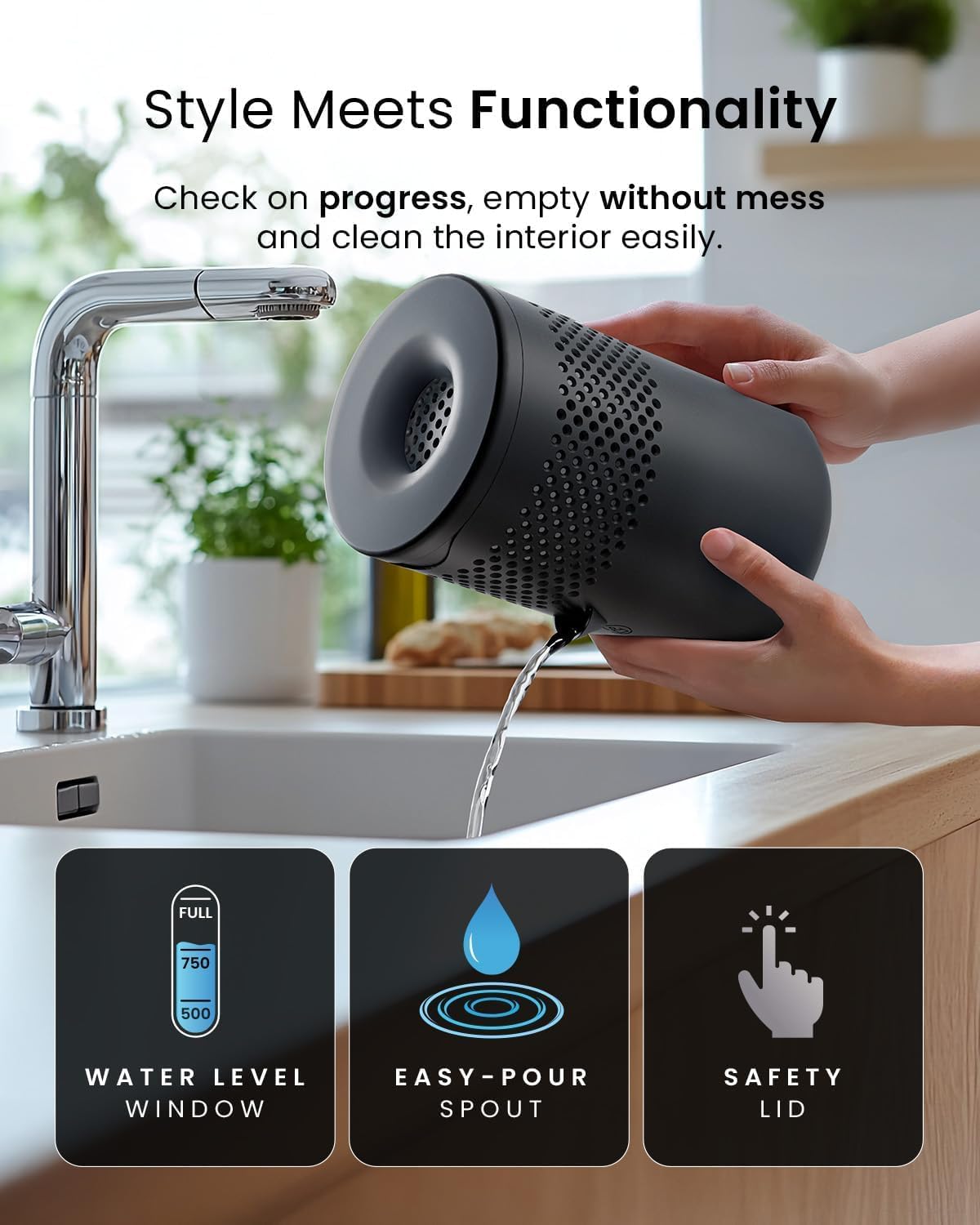 أنيق وقابل للحمل: صغير وخفيف الوزن، يأتي جهاز إزالة الرطوبة المحمول هذا بأربعة ألوان مختلفة لتتناسب مع أسلوبك، وسيبدو رائعًا في أي منزل أو حمام أو مطبخ. مزيل الرطوبة للحمام سهل المزج مع أي ديكور منزلي، مثالي لضرورياتك المنزلية.