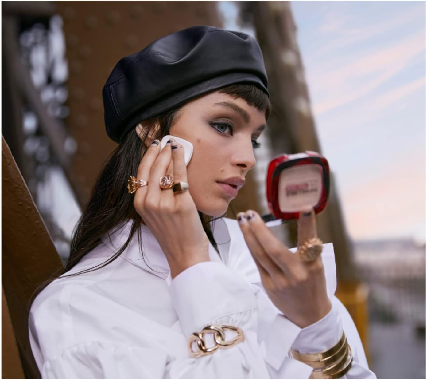 ضعيه باستخدام أداة توزيع المكياج على الوجه والرقبة، ابدئي بمنطة الأنف والجبهة وامزجيه إلى الخارج، ثم ضعي اللمسة النهائية بفرشاة كريم الأساس للحصول على مظهر خالٍ من العيوب