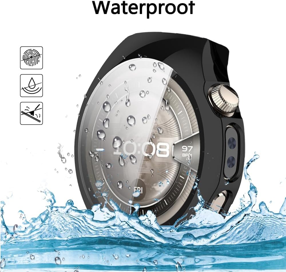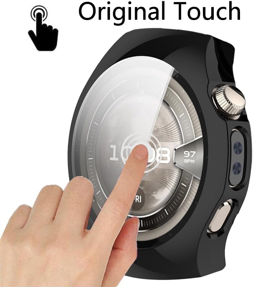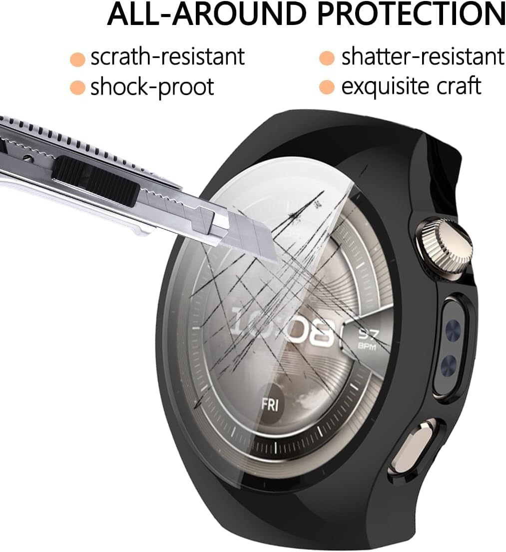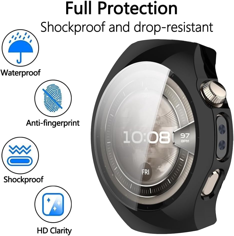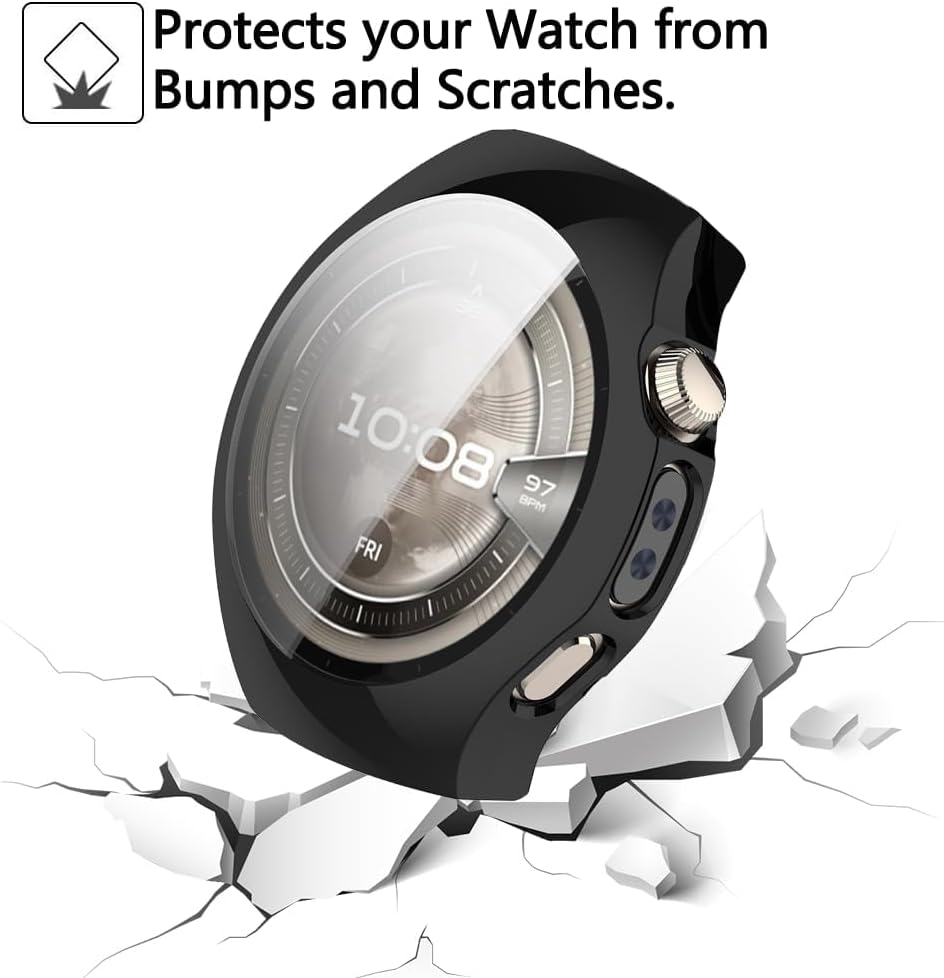 جراب حماية لساعة هواوي 5 46 ملم من ازوني مع واقي شاشة – تغطية كاملة من البولي يوريثين الحراري الناعم [حساس للمس] [مقاوم للخدش] [شفاف HD] ممتص صدمات حماية 360 درجة – اسود | متوافق مع ساعة هواوي 5 46
