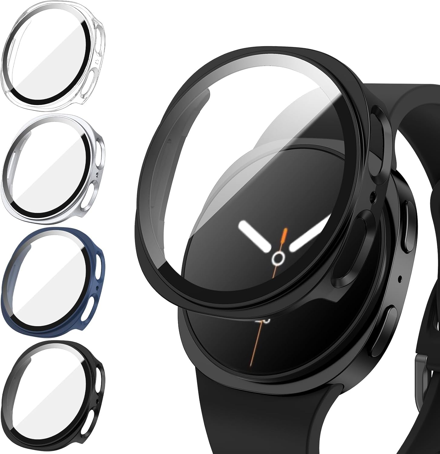 جراب صلب لساعة جالكسي 8 مقاس 44 ملم، واقي شاشة من الزجاج المقسى، غطاء واقي لكامل الجسم، ممتص للصدمات من البولي كربونات فائق النحافة ومضاد للصدمات لساعة جالكسي ووتش 8، مضاد للخدش (موديل 2025، 4 قطع)
