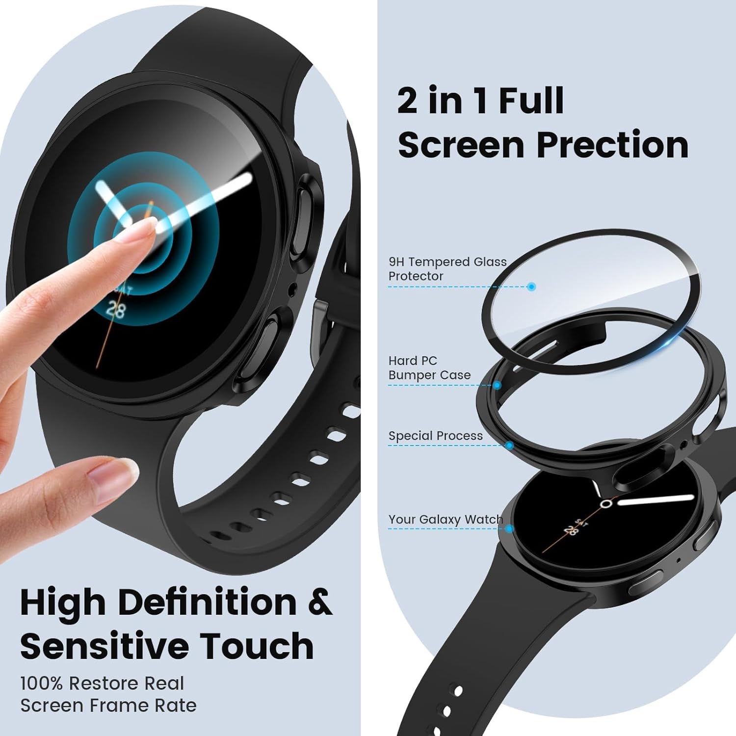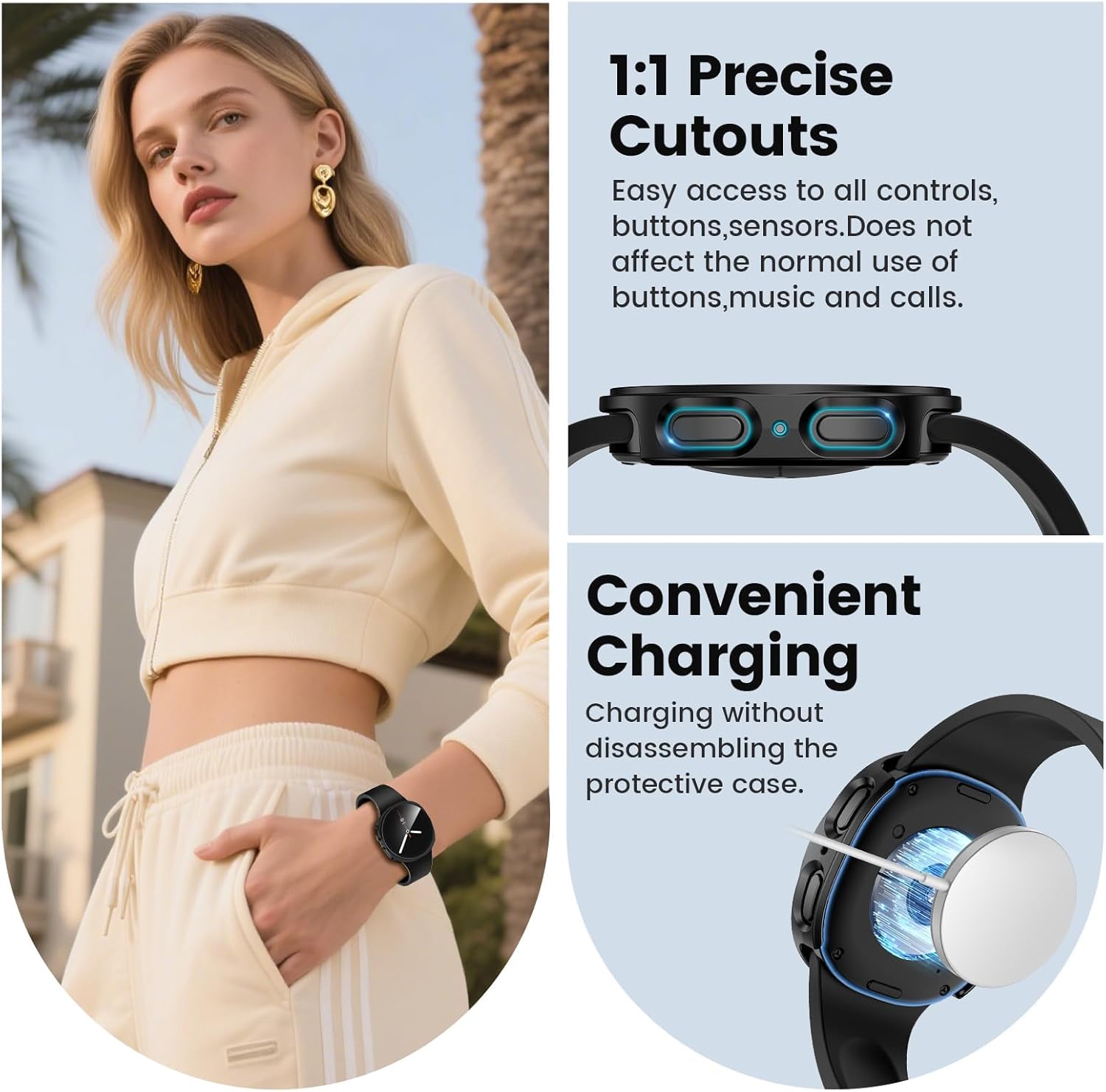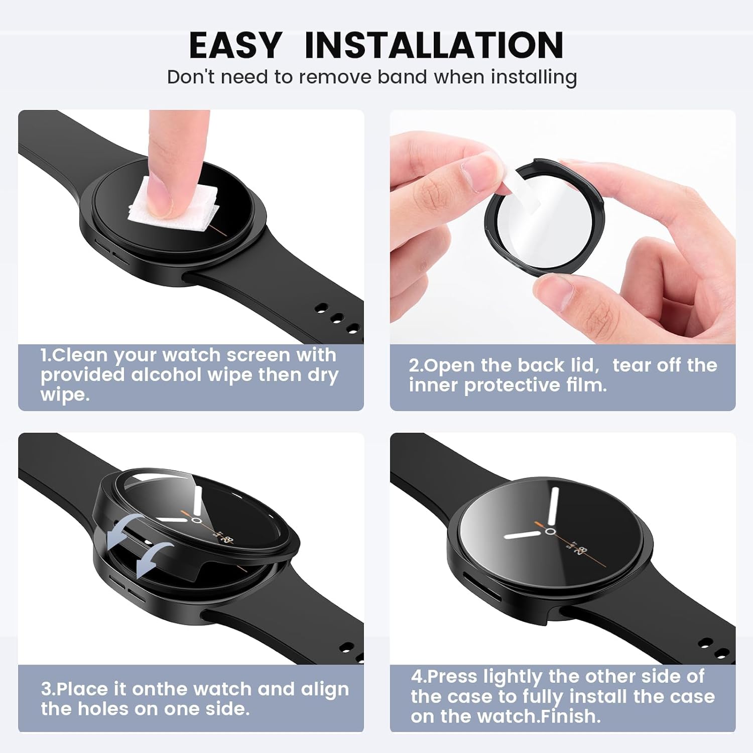 【تركيب سهل التركيب】تركيب بدون أدوات في 3 ثوانٍ. فتحات دقيقة تحافظ على وظائف الساعة الذكية بالكامل.