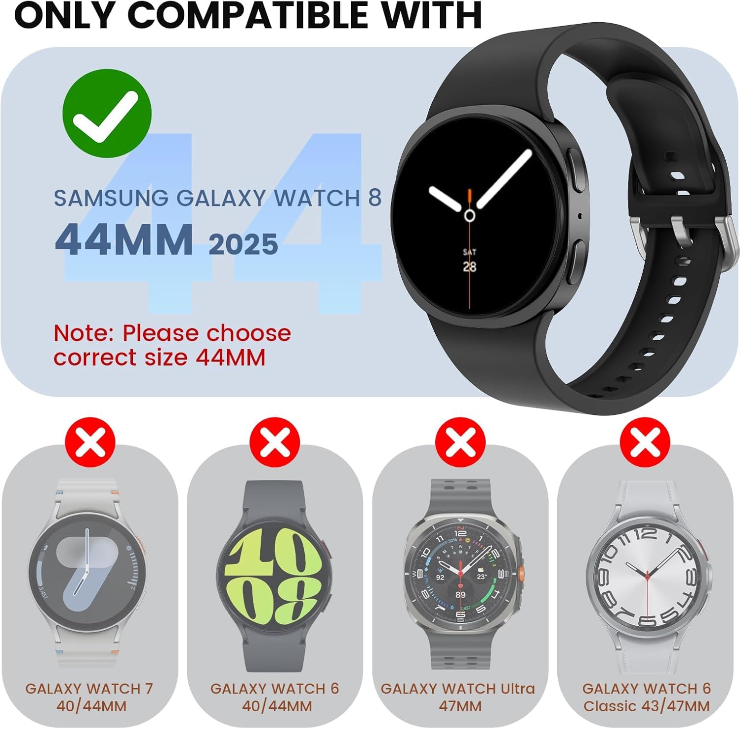 【مصنوع لساعة جالكسي 8】مصمم حصريًا لساعة سامسونج جالكسي 2025 مقاس 44 ملم. يرجى التحقق مرة أخرى من الطراز الخاص بك قبل الشراء!