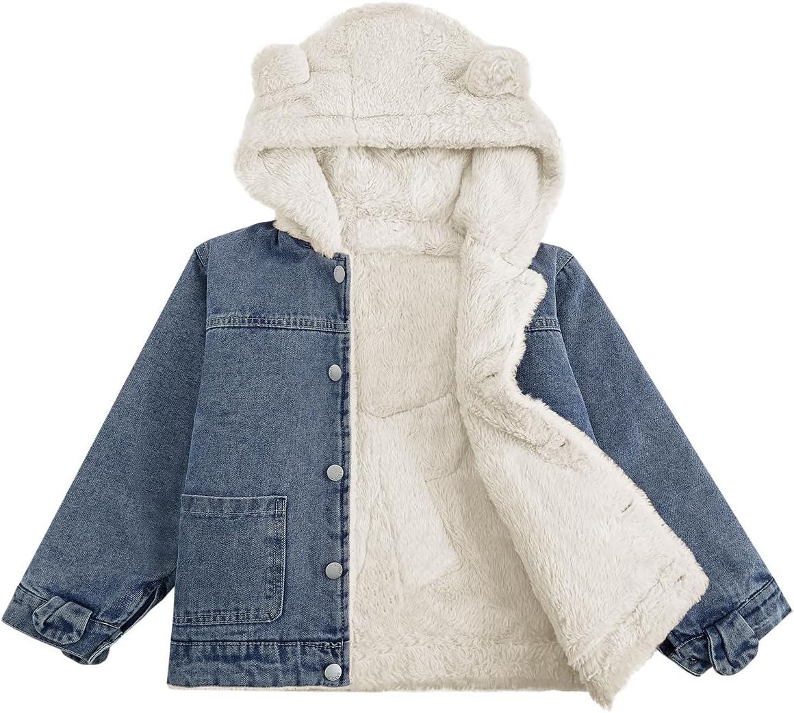 شراء جيمي جاكيت جينز للبنات، معطف شتوي بغطاء للرأس مع بطانة من الصوف الصناعي للاطفال الصغار بتصميم سميك مزين بالترتر اون لاين من امازون او نون وحراج جيمي جاكيت جينز للبنات، معطف شتوي بغطاء للرأس مع بطانة من الصوف الصناعي للاطفال الصغار بتصميم سميك مزين بالترتر