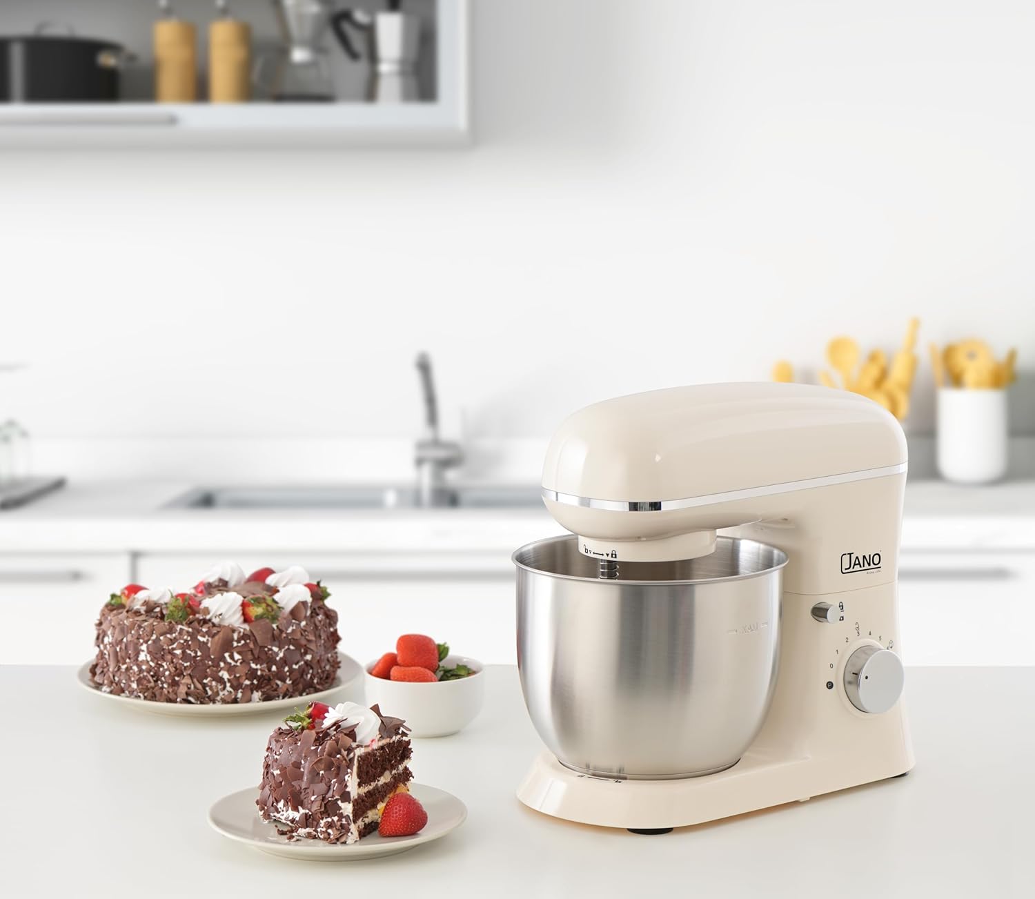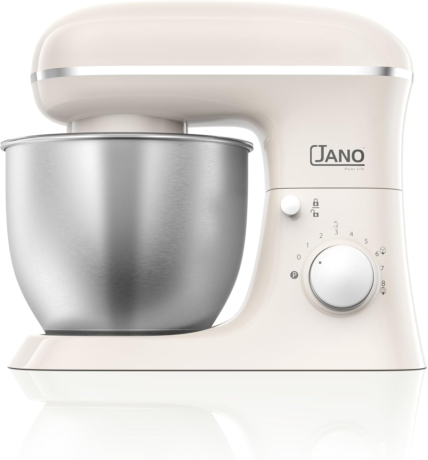 خلاط كهربائي قائم بقدرة 1300 وات مع تحكم احترافي بعدد 8 سرعات ووظيفة النبض، خلاط كهربائي قائم بوعاء قابل للإزالة من جانو، لون بيج، سعة 5 لتر، موديل JN02202