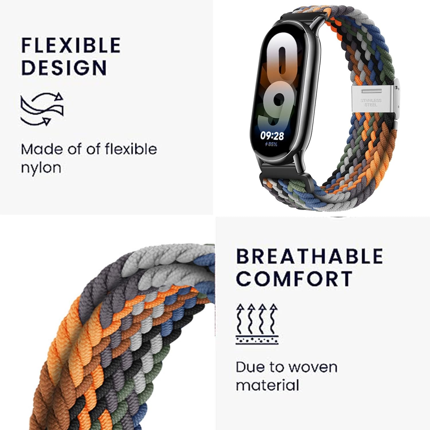 سوار ساعة بديل رياضي مرن من النايلون قابل للتعديل وناعم وجيد التهوية بتصميم حلقي فردي مضفر متوافق مع ساعة شاومي مي باند 8