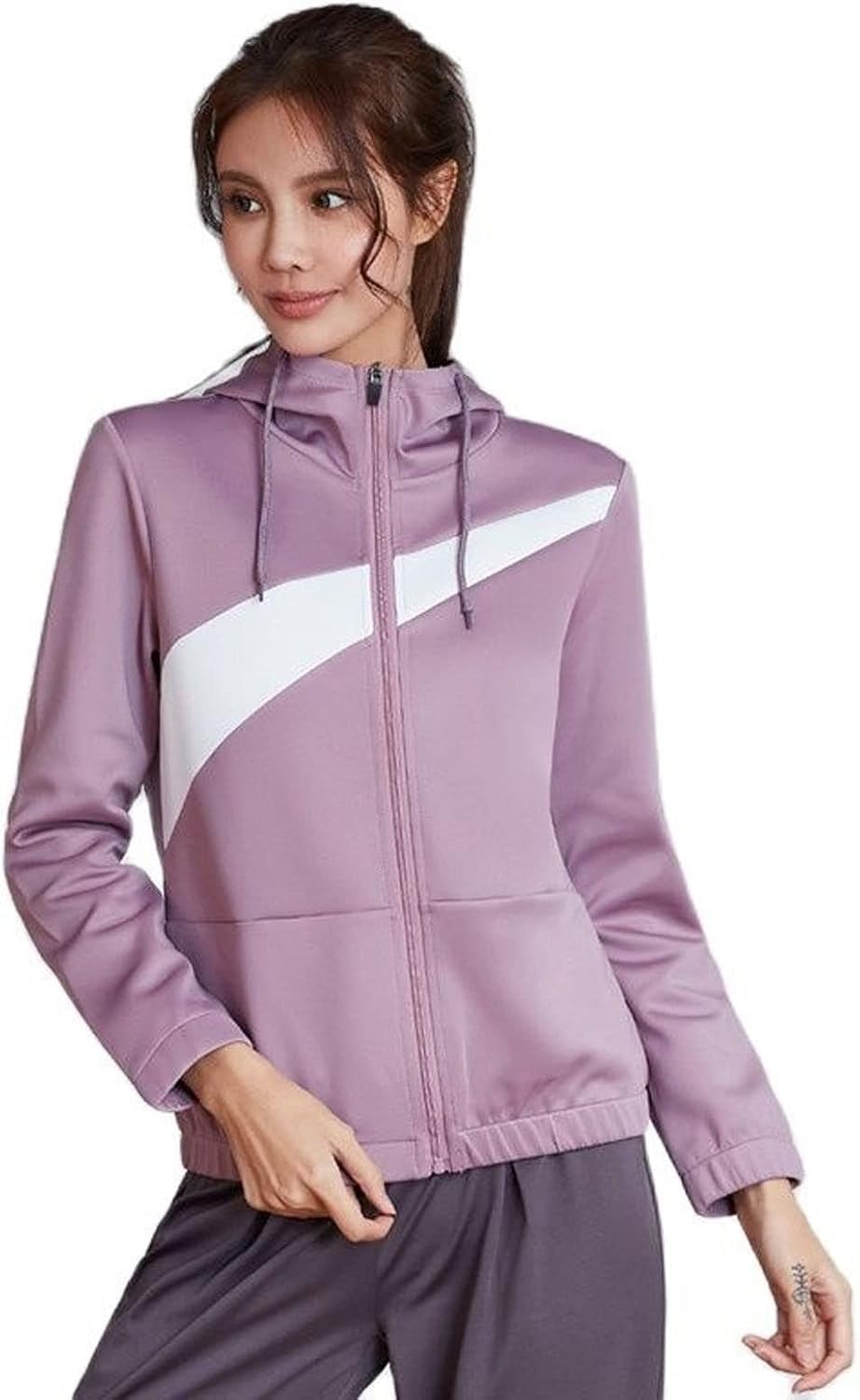 سويت شيرت TOEE نسائي رياضي خريفي للجري سترة نسائية بسحاب للصالة الرياضية قميص رياضي بقلنسوة متعدد الألوان للتدريب واللياقة البدنية ملابس خارجية مقاومة للرياح (اللون: أرجواني فاتح، المقاس: كبير)