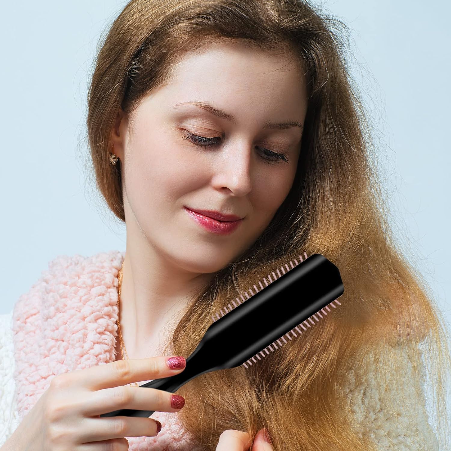 فرشاة شعر من ساجريني 9 صفوف، فرشاة تصفيف الشعر لفصل الشعر وتشكيل وتحديد تجعيدات الشعر وتصفيفه وفك التشابك ومقاومة للكهرباء الساكنة