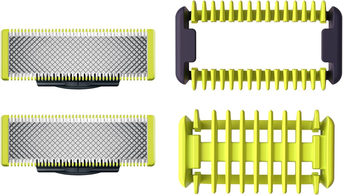مجموعة هيكل ون بلايد: شفرتان احتياطيتان + نظام مشبك واقي + مشط للجسم متوسط العمر: 8 أشهر متوافق مع جميع موديلات ون بليد وون بليد برو (QPxxxx)