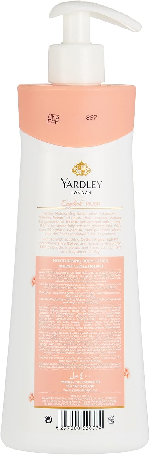 لوشن للجسم من ياردلي مهدئ للبشرة العادية إلى الجافة، برائحة المسك الإنجليزي، 400 مل