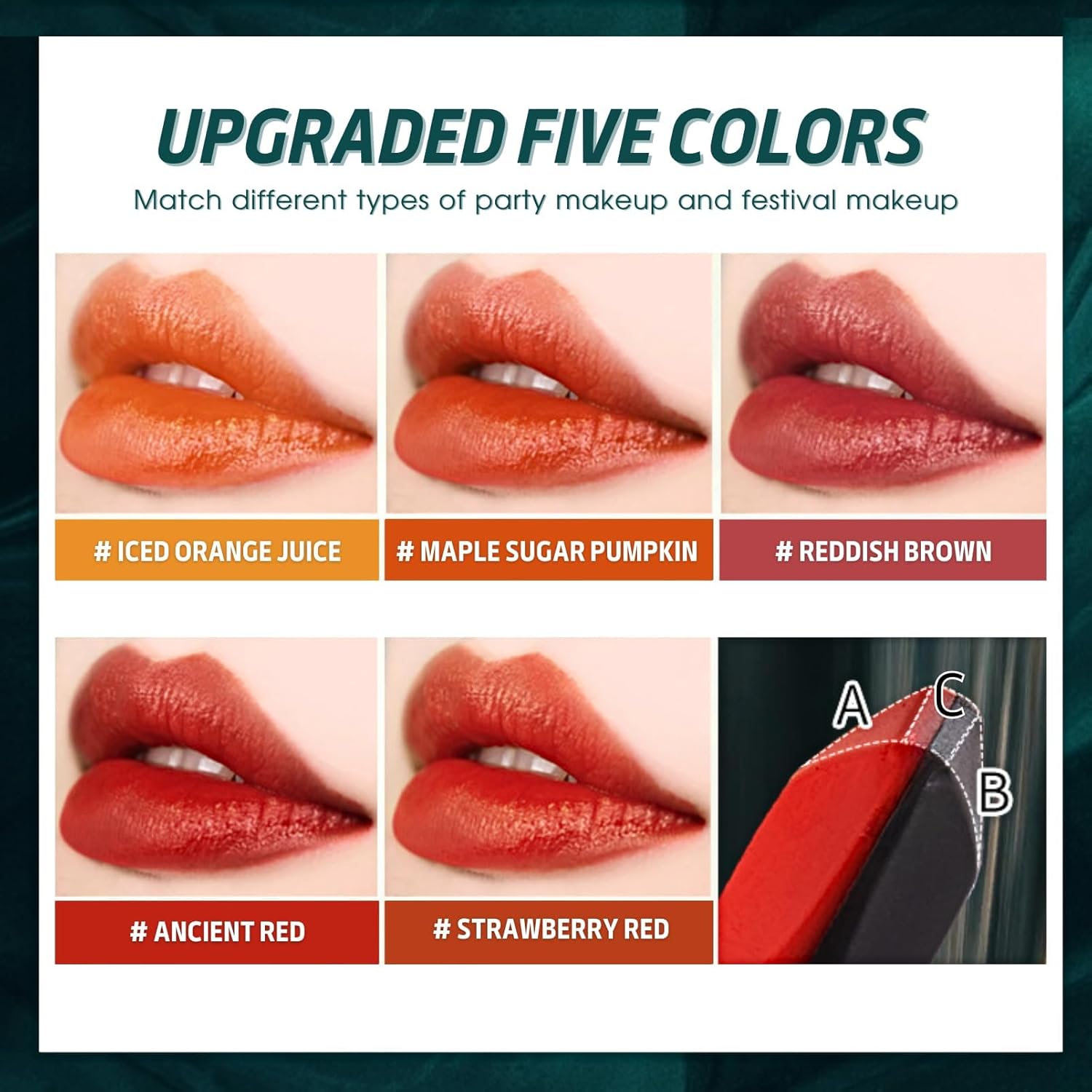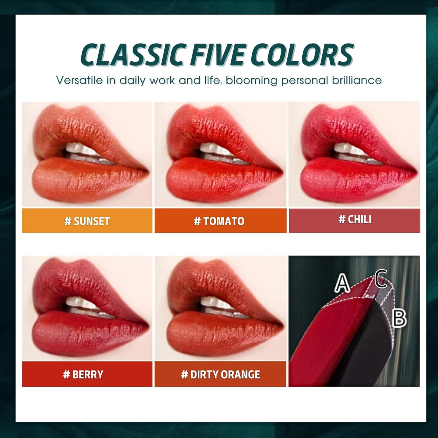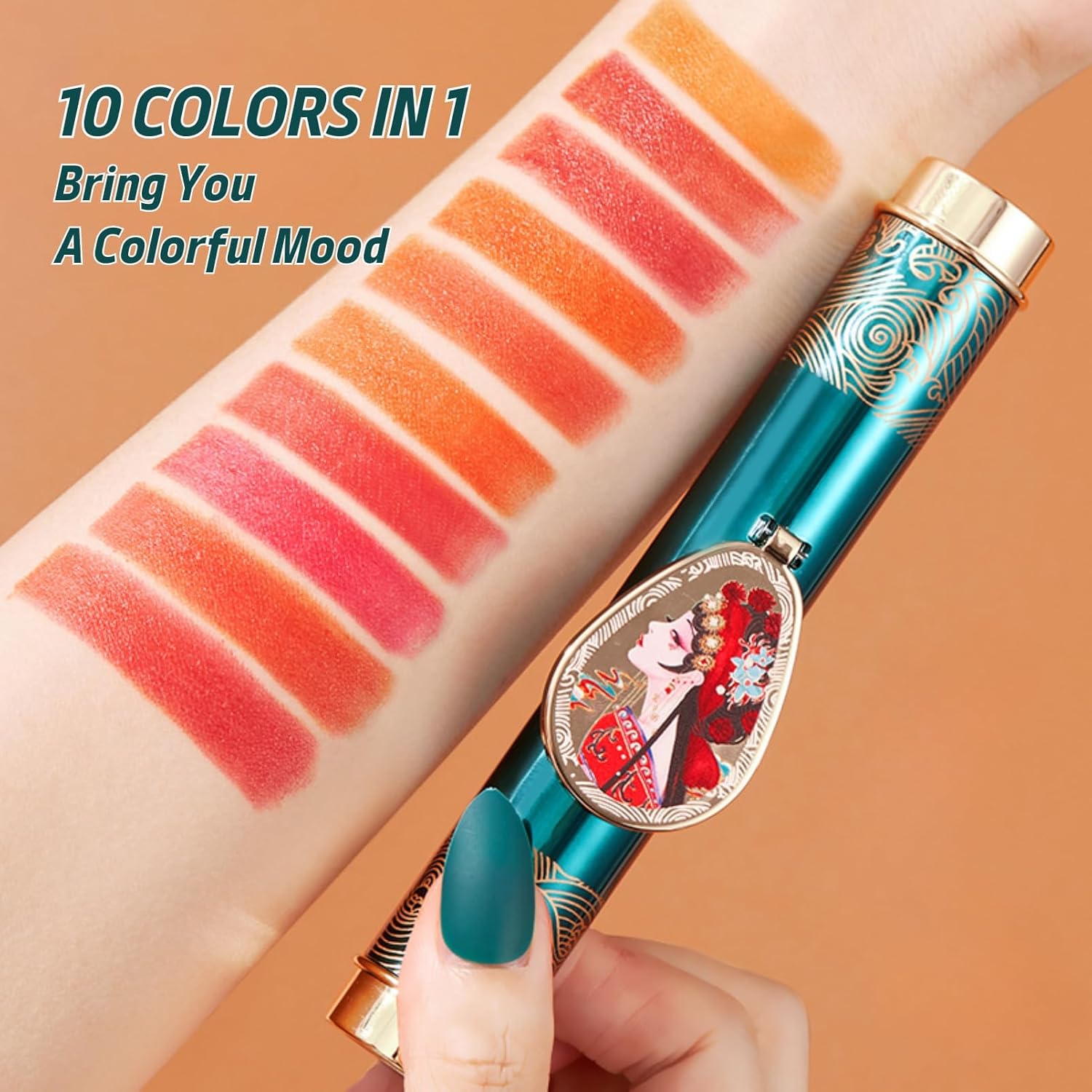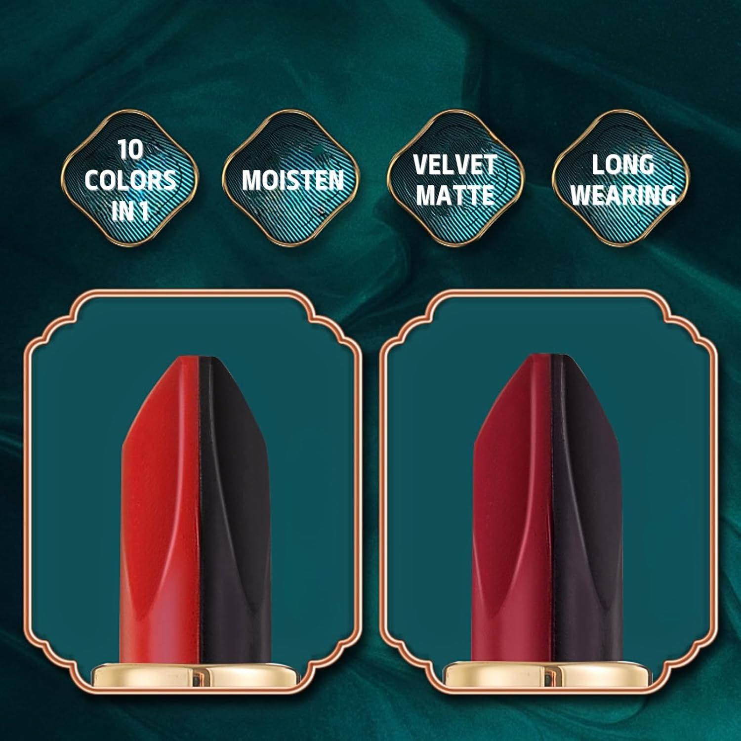 【10 ألوان في أحمر شفاه غير لامع】: يتميز بـ 10 درجات ألوان نابضة بالحياة من الأحمر الغامق إلى البرتقالي الأنيق لتكمل أي نمط مكياج ولون بشرة.