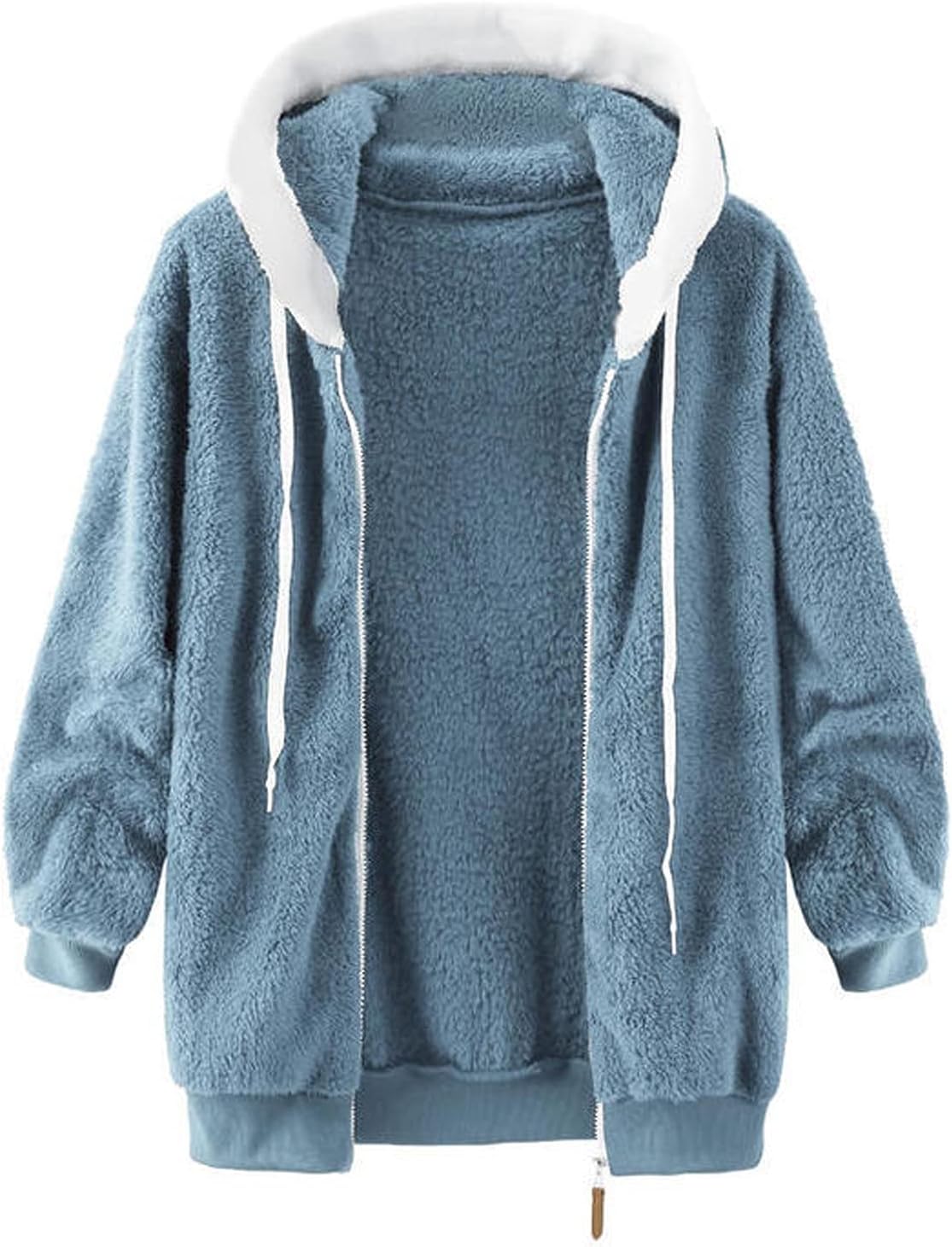 معطف TOEE النسائي معاطف بقلنسوة، سويت شيرت خريفي للملابس الشارعية النسائية كاجوال سترات فضفاضة، صوف بسحاب أبلى بأكمام طويلة للنساء (اللون: أزرق، المقاس: XL)