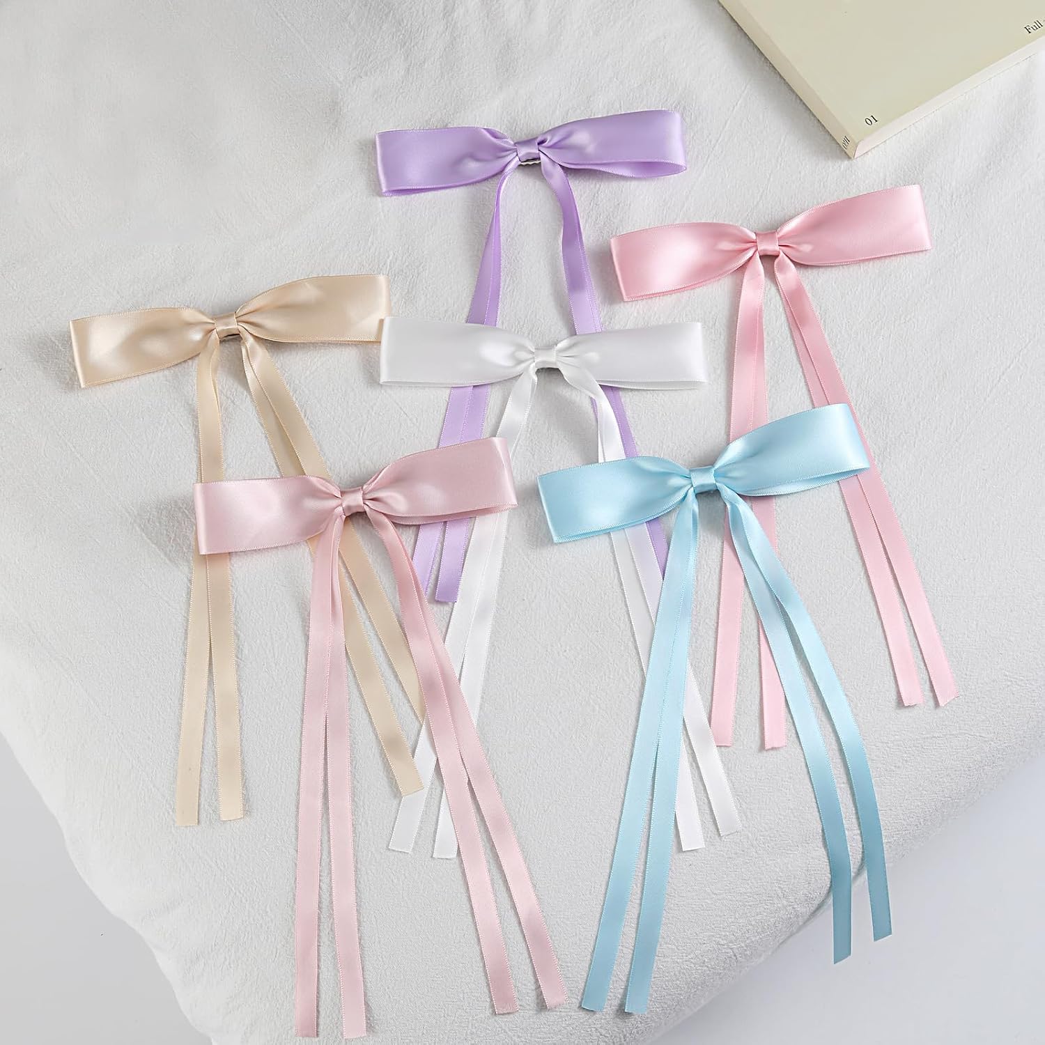 شراء 6PCS Bow Hair Clips, Soft Silky Stain Ribbon Hair Clips for Women, Cute Hair Bows with Long Tail, Solid Bows for Female Thick Thin Long Hair,Hair Accessories (Macaron) اون لاين من امازون او نون 6PCS Bow Hair Clips, Soft Silky Stain Ribbon Hair Clips for Women, Cute Hair Bows with Long Tail, Solid Bows for Female Thick Thin Long Hair,Hair Accessories (Macaron)