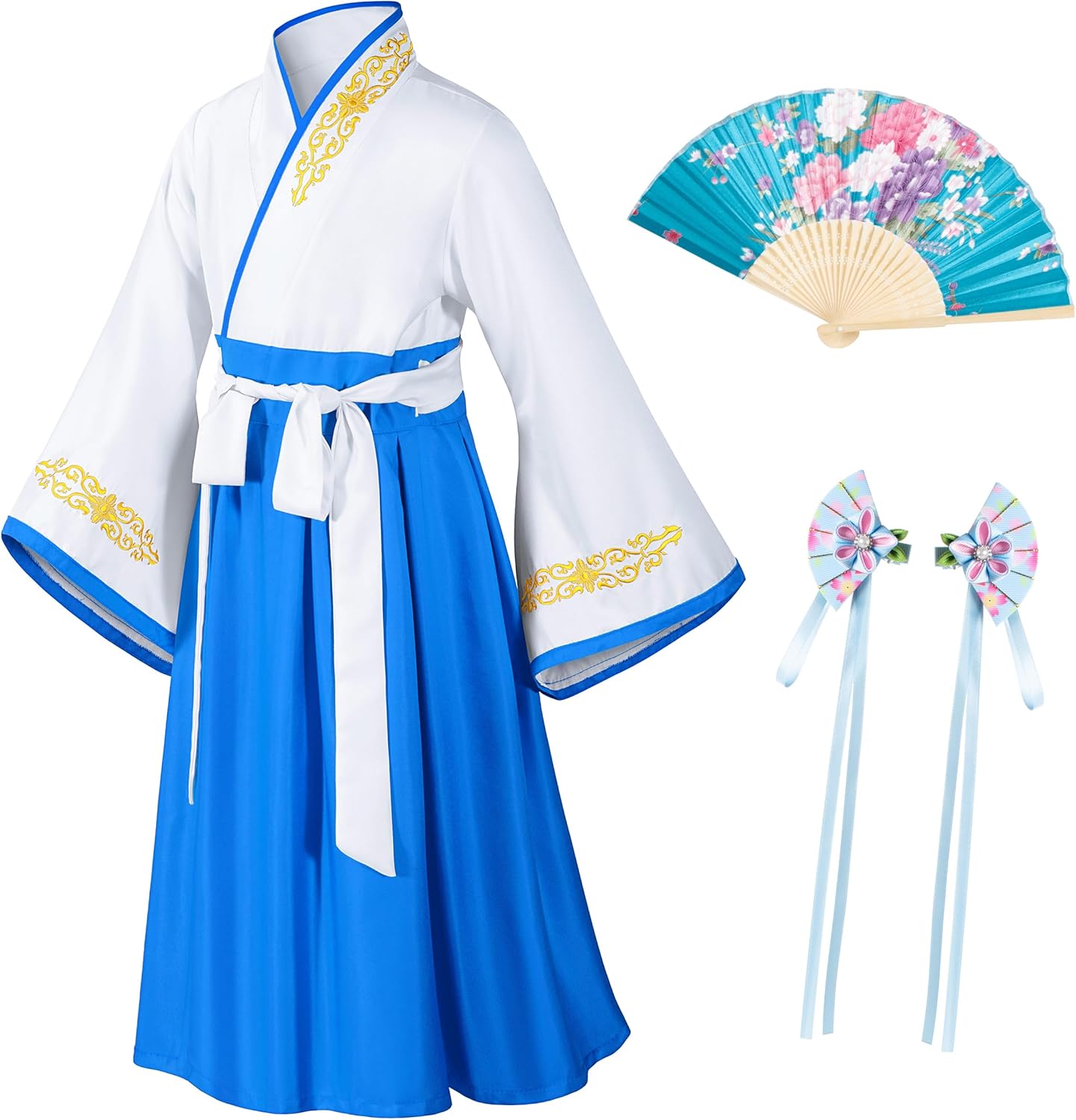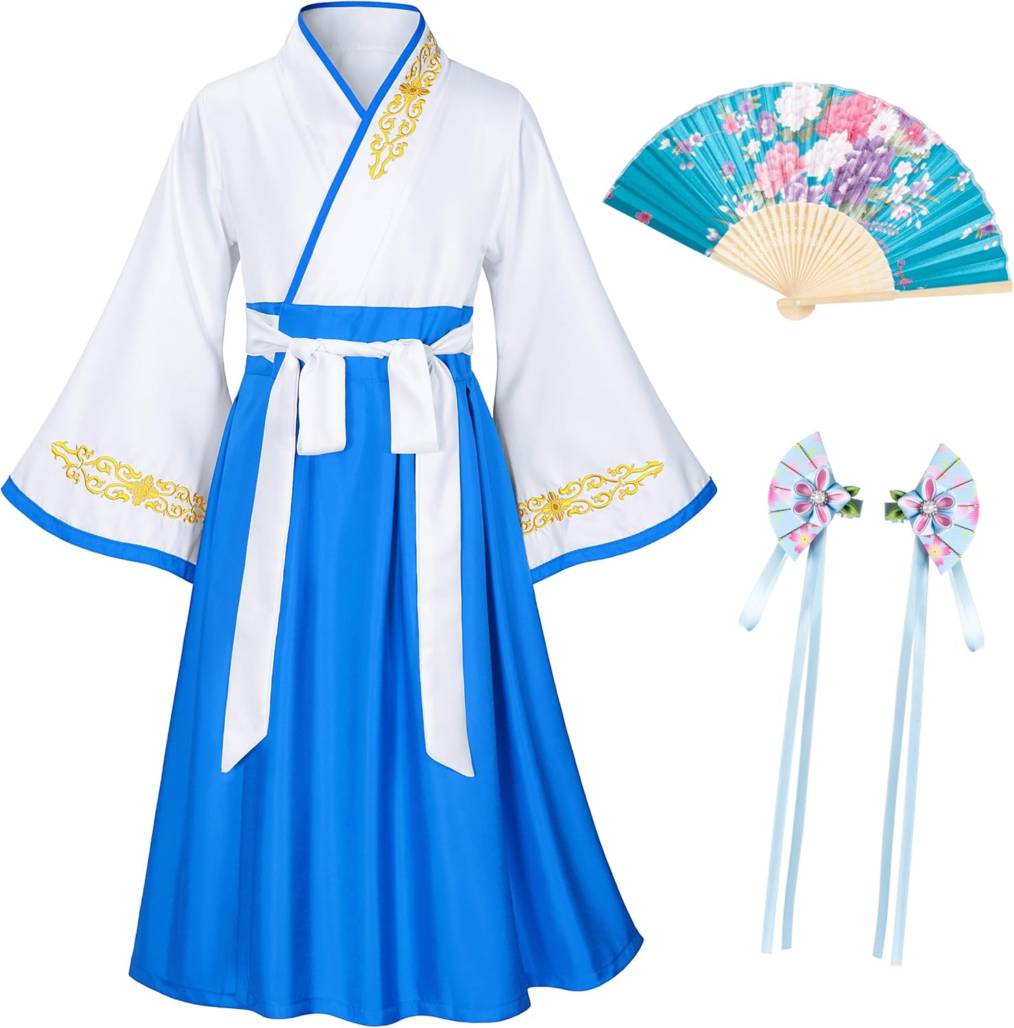 شراء Asian Traditional Dress Kimono Robe for Kids Girls Costume Silk Folding Fans hairstick Cosplay اون لاين من امازون او نون Asian Traditional Dress Kimono Robe for Kids Girls Costume Silk Folding Fans hairstick Cosplay