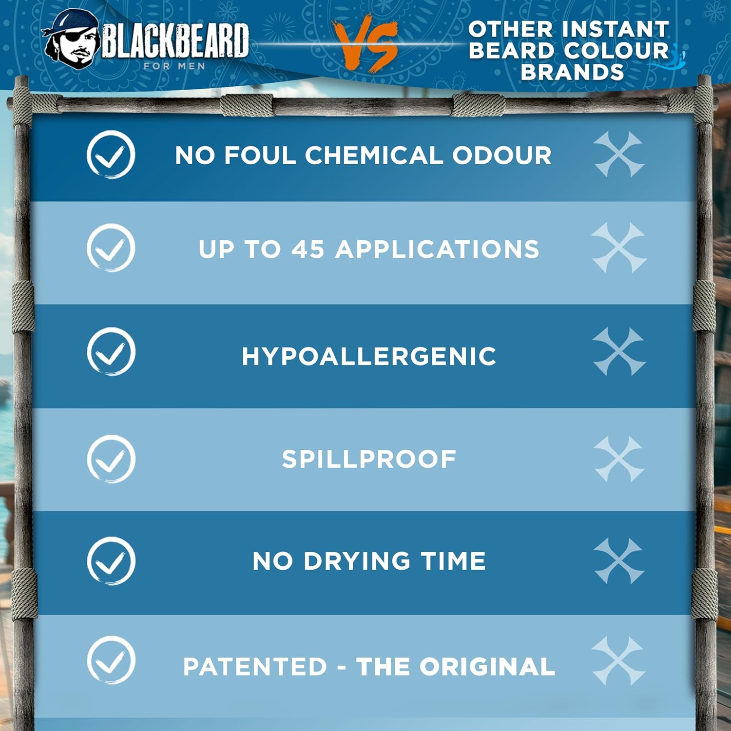 ALTERNATIVE TO HARSH BEARD DYES: No itching or irritation for most men. Blackbeard for Men is not a dye. It’s a patented, temporary cosmetic beard color that contains none of the chemicals in dyes that cause skin irritation