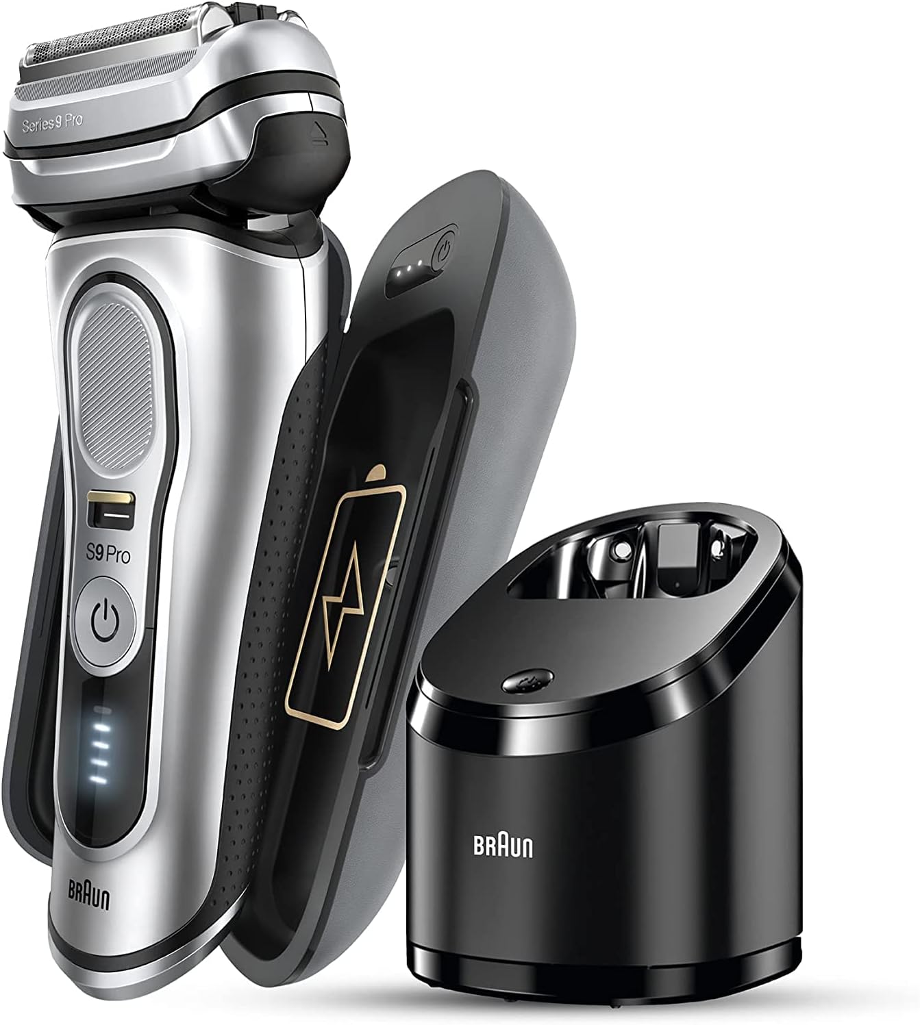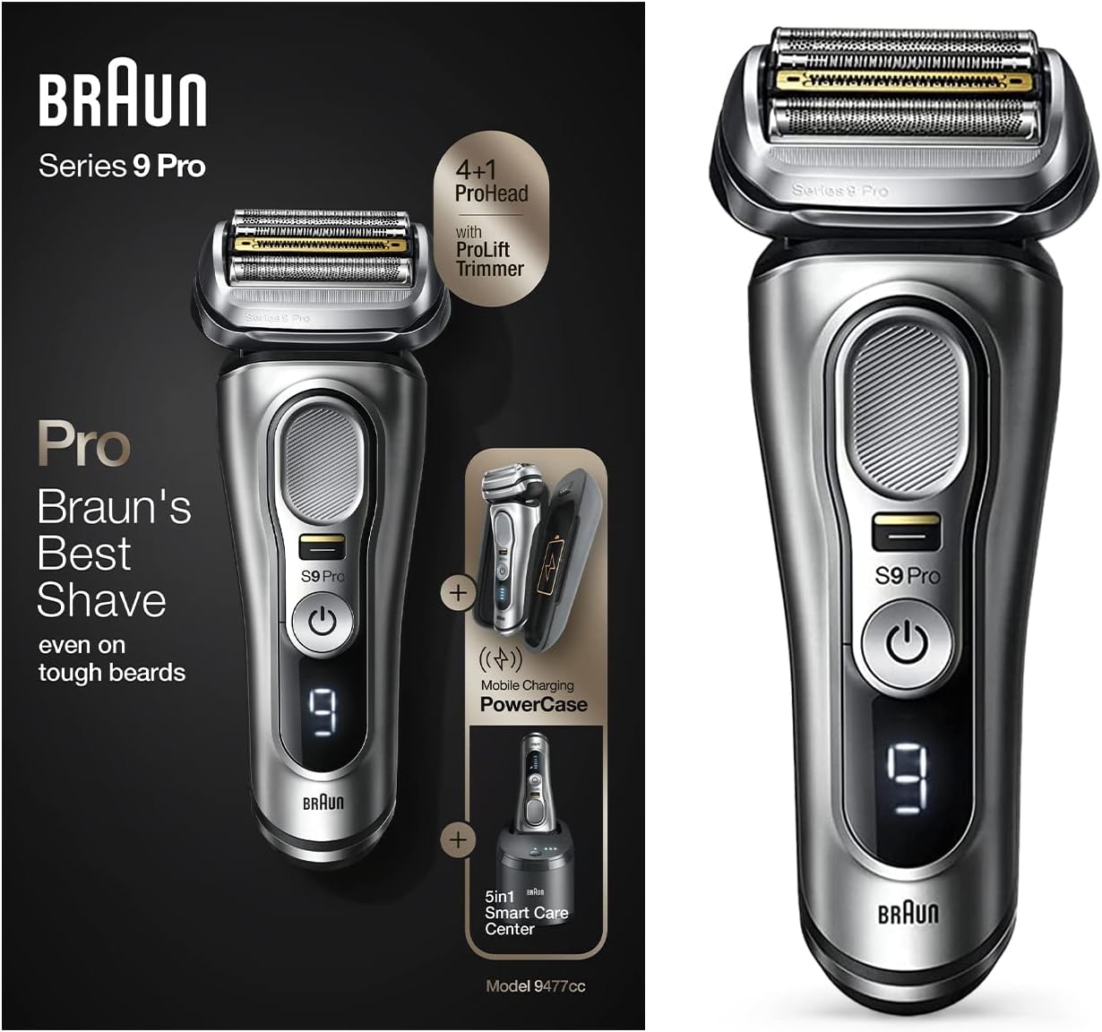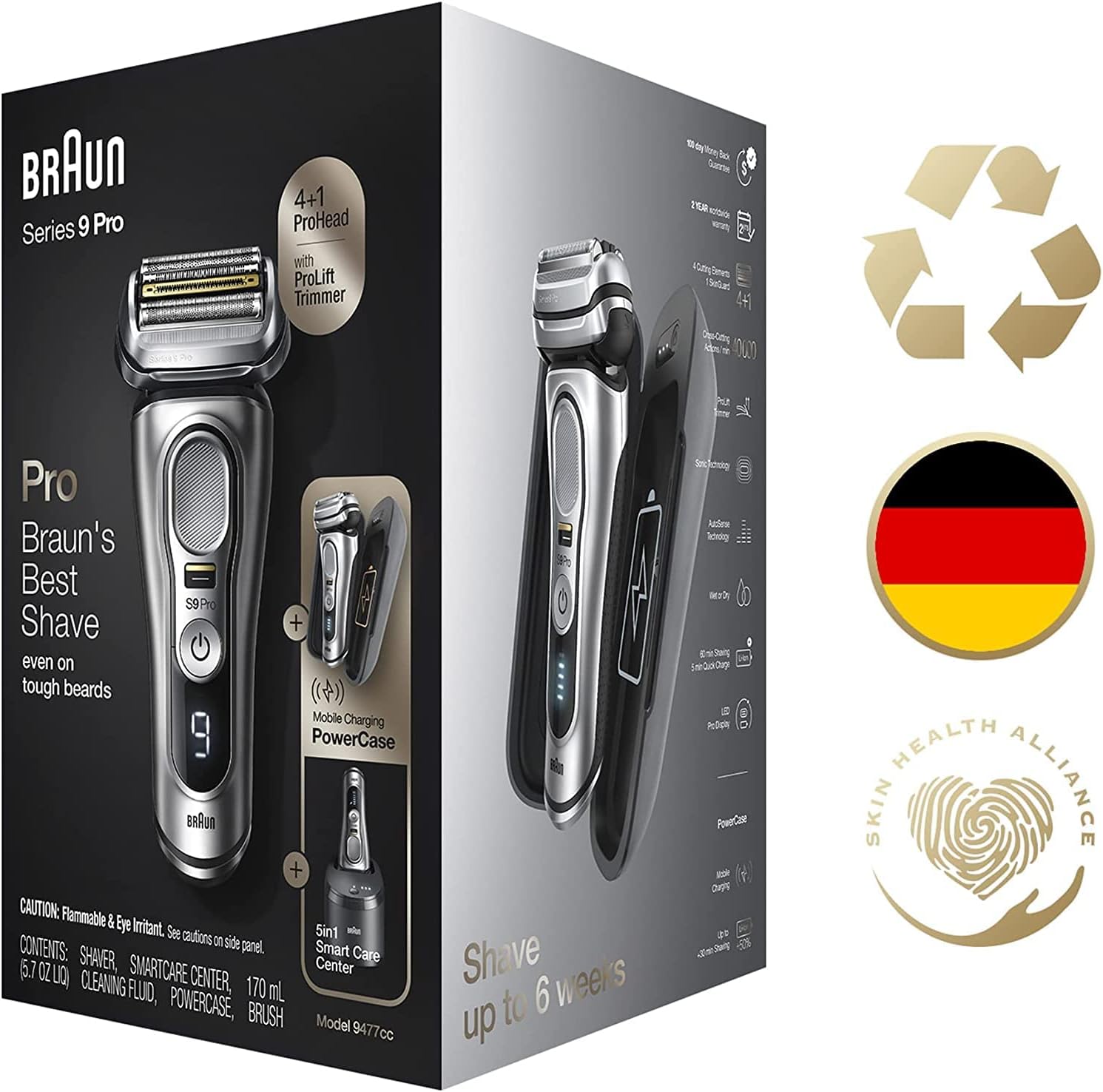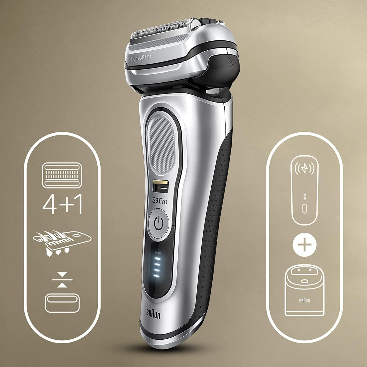 Braun Series 9 Shaver 9477Cc 4+1 Pro Head – Pro Electric Shaver With Mobile Charging Powercase, Silver