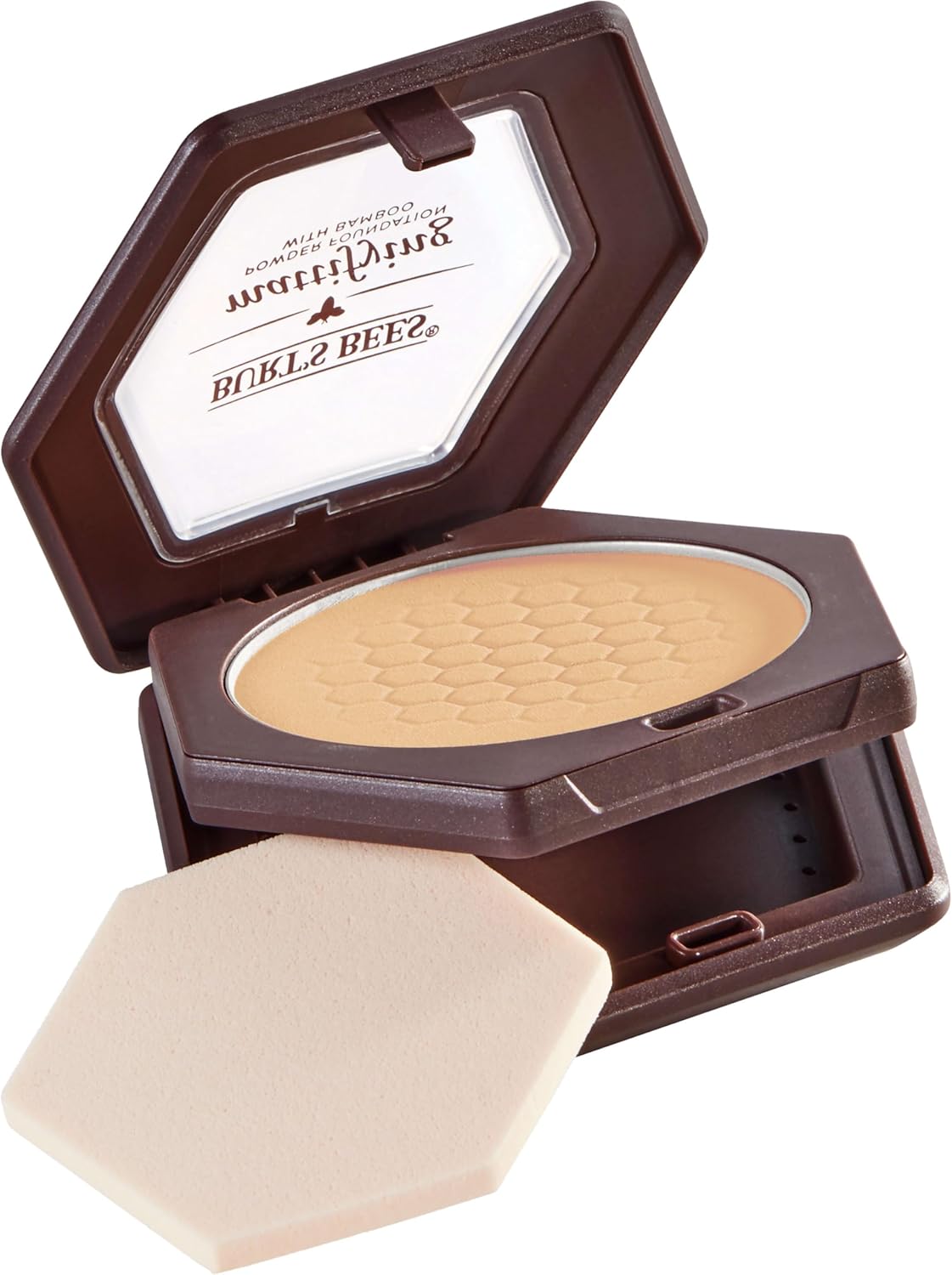 Shine from within, not on your skin. Burts Bees 100% Natural Origin Mattifying Powder Foundation in Sand controls shine with buildable and blendable coverage to give you a smooth and even skin tone. Lightweight and non-comedogenic, Burts Bees Mattifying Powder Foundation is perfect for oily or combination skin, effectively absorbing oil without drying out your skin. Made with Bamboo to blur imperfections, this mineral makeup blends easily to even out your skin. Available in six shades, Sand is ideal for medium to tan skin tones with cool undertones. Use the included custom sponge applicator and mirror to build coverage gradually. Burts Bees Mattifying Powder Foundation is formulated without parabens, phthalates, SLS, petrolatum or synthetic fragrances. Its dermatologist tested and never tested on animals.
