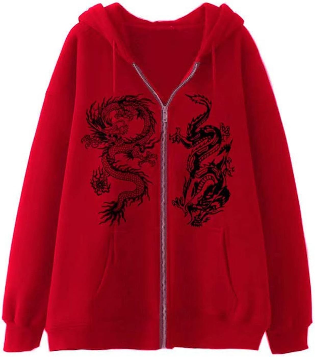 شراء Chahuer Women’s Dragon Print Zipper Sweatshirt Fashion Hip Hop Sports Hoodie Autumn And Winter New Loose Fleece Jacket red 1 XL اون لاين من امازون او نون وحراج Chahuer Women’s Dragon Print Zipper Sweatshirt Fashion Hip Hop Sports Hoodie Autumn And Winter New Loose Fleece Jacket red 1 XL