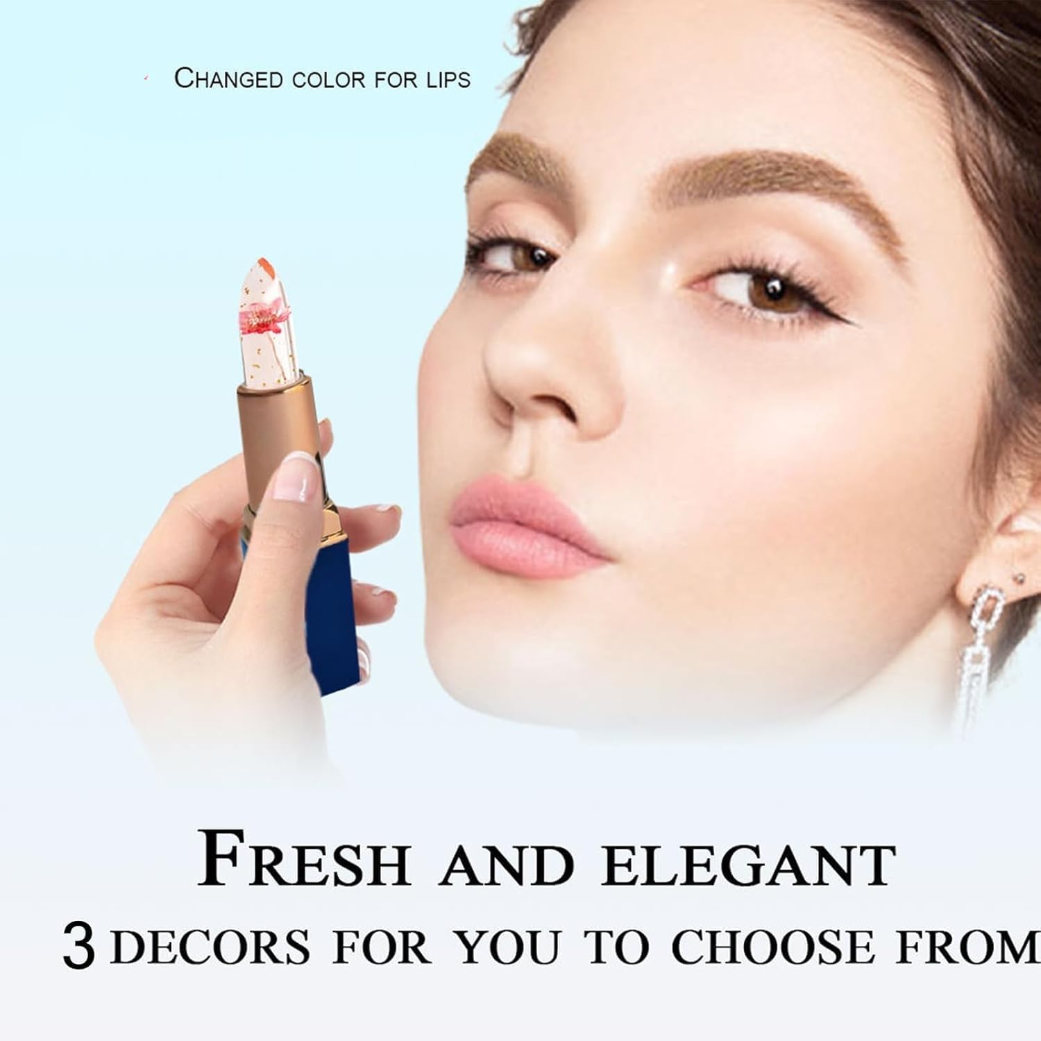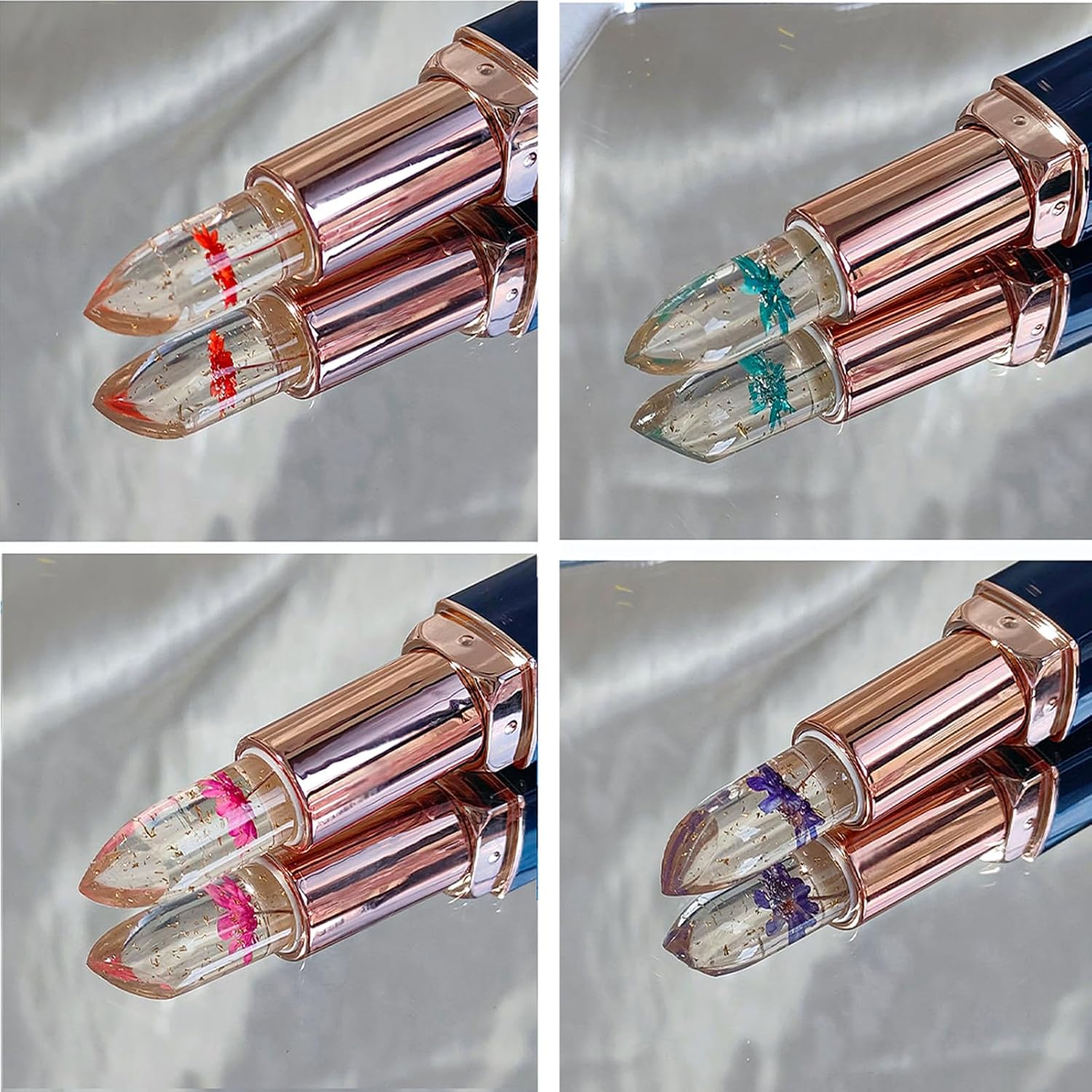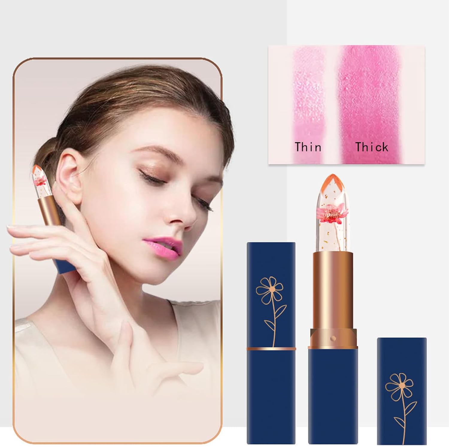 Innovative Flower Design: Each jelly flower lipsticks contains a real gold flake flower, and the compact box allows you to carry it with you at any timeMoisturising and Mild Ingredients: Clear color changing lipstick rich in Aloe Vera and other ingredients, can form a protective film on the lips, lock the lip skin moisture,improve dry lip lines