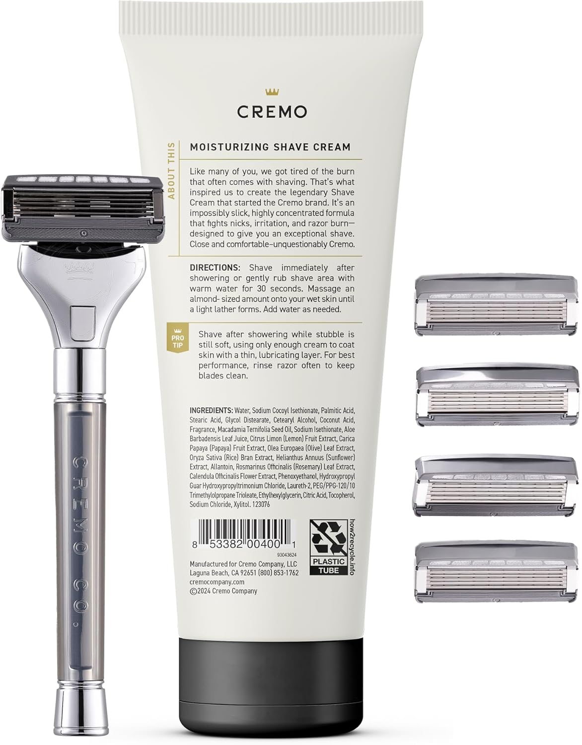 شراء Cremo Original Shave Gift Set for Men, includes Impossibly-Slick 6 oz Shaving Cream, Chrome Barber Grade Razors for Men and four Razor Blades Refills اون لاين من امازون او نون وحراج Cremo Original Shave Gift Set for Men, includes Impossibly-Slick 6 oz Shaving Cream, Chrome Barber Grade Razors for Men and four Razor Blades Refills