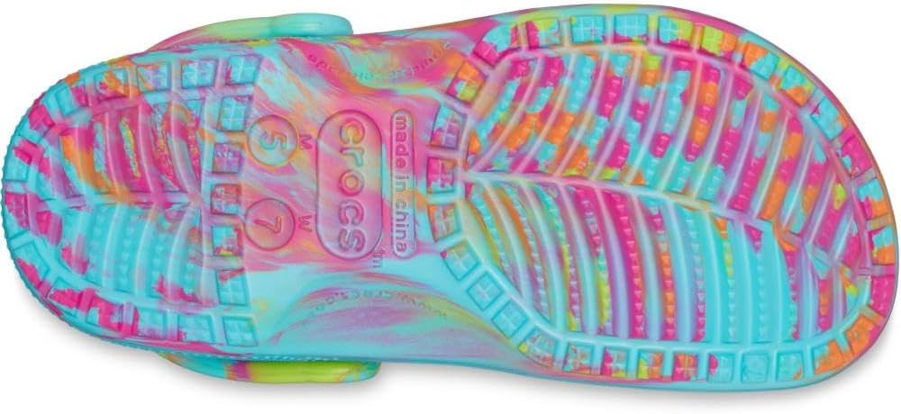 International products have separate terms, are sold from abroad and may differ from local products, including fit, age ratings, and language of product, labeling or instructions. All Crocs shoes are uniquely designed and manufactured using our proprietary closed-cell resin, Croslite, a technology that gives each pair of shoes the soft, comfortable, lightweight and non-marking qualities that Crocs wearers know and love. Heat: do not expose your Crocs shoes to extreme heat or intense sunlight for an extended period of time. Due to the unique nature of the Crocs PCCR material, high temperatures may cause them to warp. Crocs shoes should solely be hand washed. If the model features a lining, it is recommended to put the lining in a mesh fabric or use a delicate cycle (of up to 30 °) if you machine wash. Cleaning your Crocs using the washing machine is at your own risk NOTE: Size embossed on the sole is US size, for UK/EU sizes check size label on the item