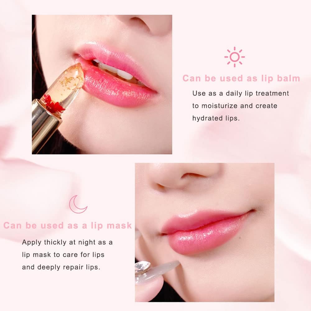This dry flower crystal clear jelly lip balm has magical magic, it can change the lip color with the change of your lip temperature and PH value, making it a fun addition to your makeup routine.