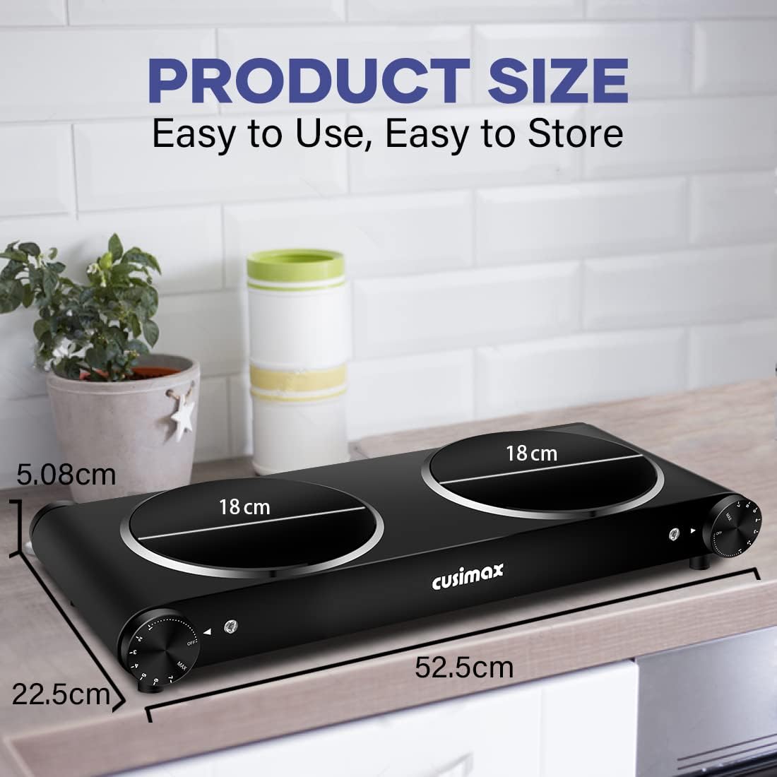 [Works with All Types of Cookware] CUSIMAX double hot plate is compatible with all types of cookware, can be used with all types of cookware with a diameter of 18CM, heats evenly and maintains high heat throughout the cooking.