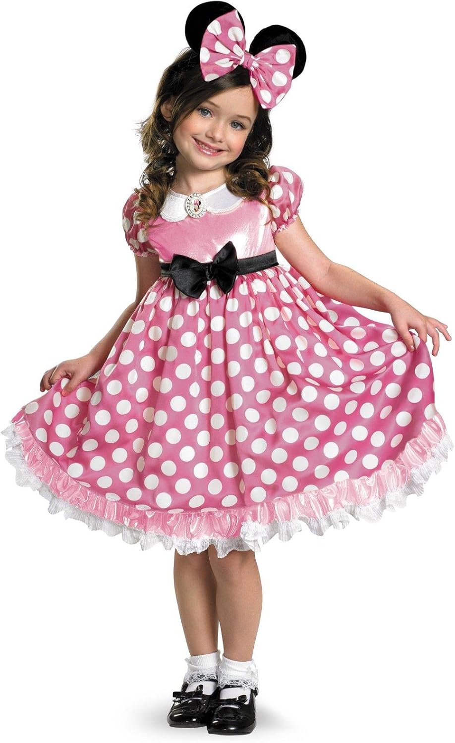 Our Pink Minnie Mouse Glow-in-the-Dark Dot Dress comes in child sizes Medium, Small, X-Small