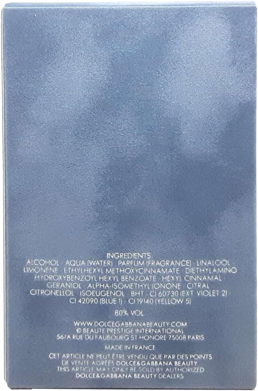 INDICATIONS: Dolce and Gabbana Light Blue Eau de Toilette Spray starts with sicilian mandarin combined with frozen grapefruit peel, bergamot and juniper. Heart notes of rosemary, szechuan pepper and rosewood.