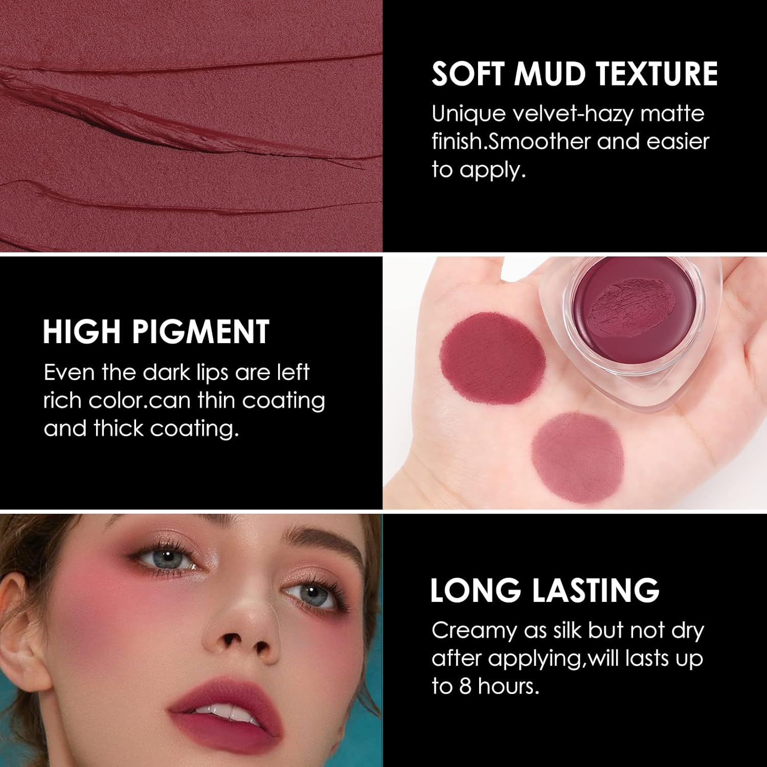 【Velvet-hazy matte finish】The brand new hazy velvet-matte lip mud, makes your lips & cheeks feel silky beyond imagination. Its touch on the surface is as bouncy as pudding, but the touch becomes smooth like cream after pressing. After evenly applying on the lips, it presents an advanced hazy velvet matte finish.