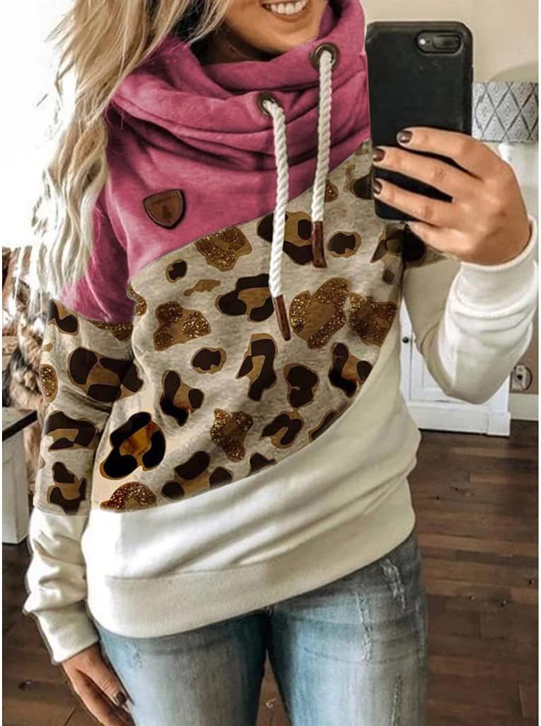 The fashionable sweatshirt is designed with Cowl Neck Hoodie to keep you warm in the cold, and the drawstring pullover sweatshirt top can easily create a fashionable look.