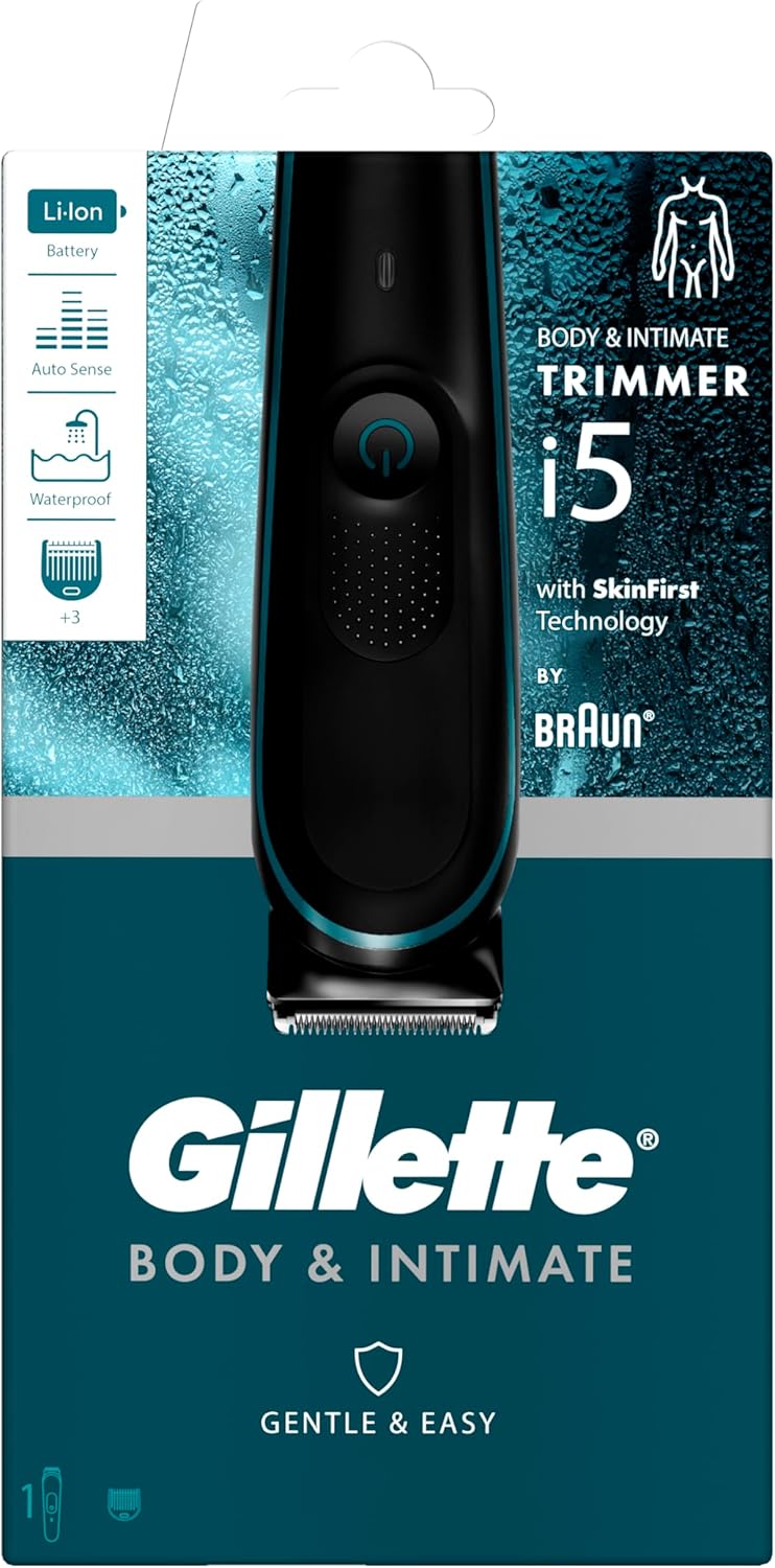 Gillette Body and Intimate Trimmer i5 is the ultimate pubic hair trimmer for men, designed for modern male grooming with precision and comfort. As the Gillette first intimate razor for men, it features SkinFirst technology with closely spaced blades and a sensitive comb attachment to reduce nicks, cuts and irritation.