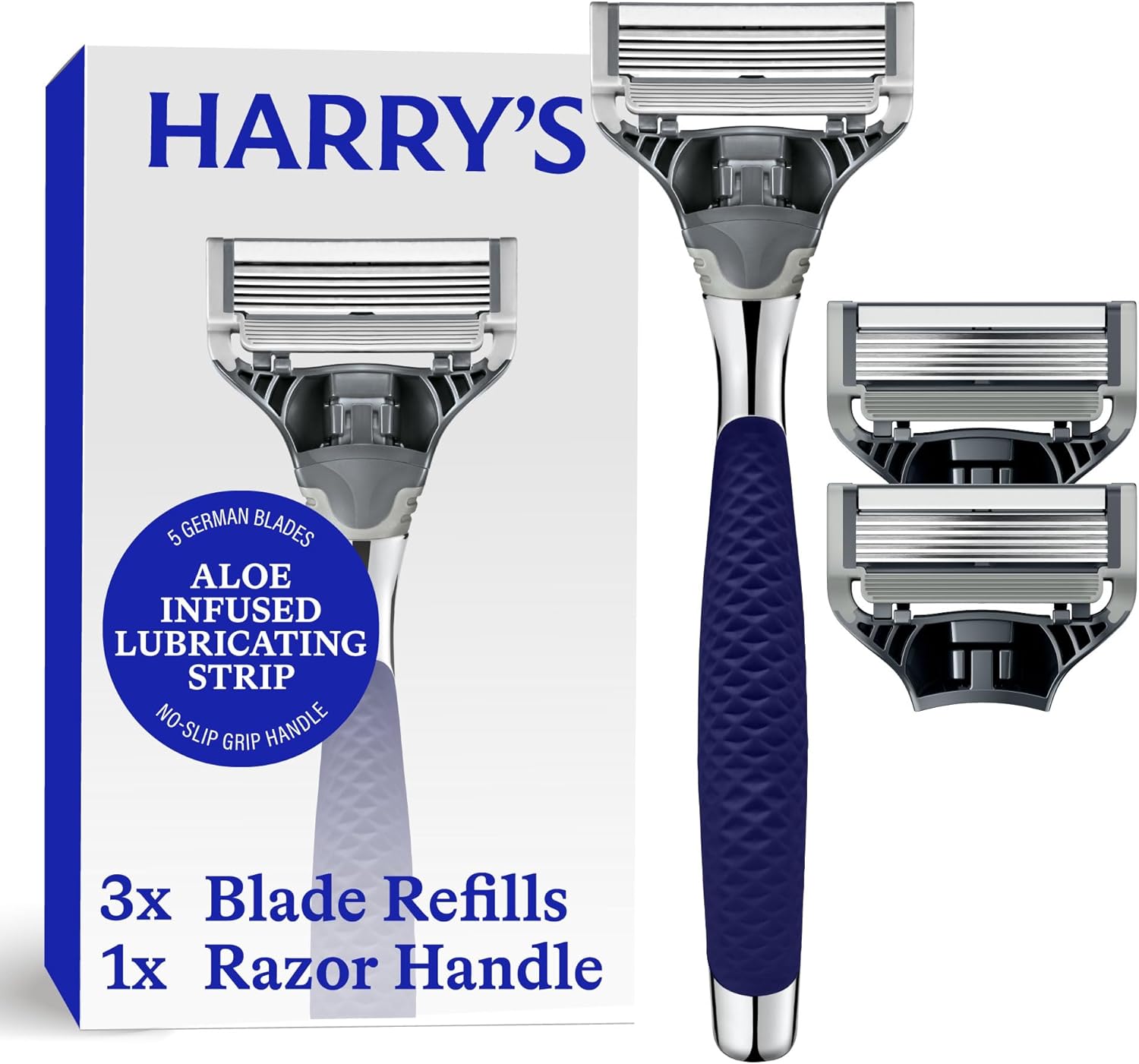 HARRY’S SHAVE KIT FOR MEN: Includes a Harry’s Winston razor handle and three razor blade refills; Designed for your face, and not recommended for head shaving