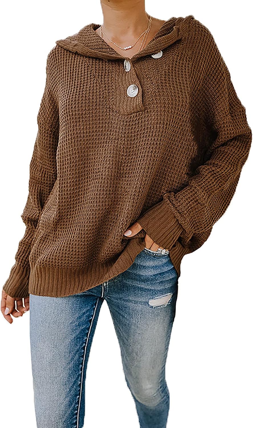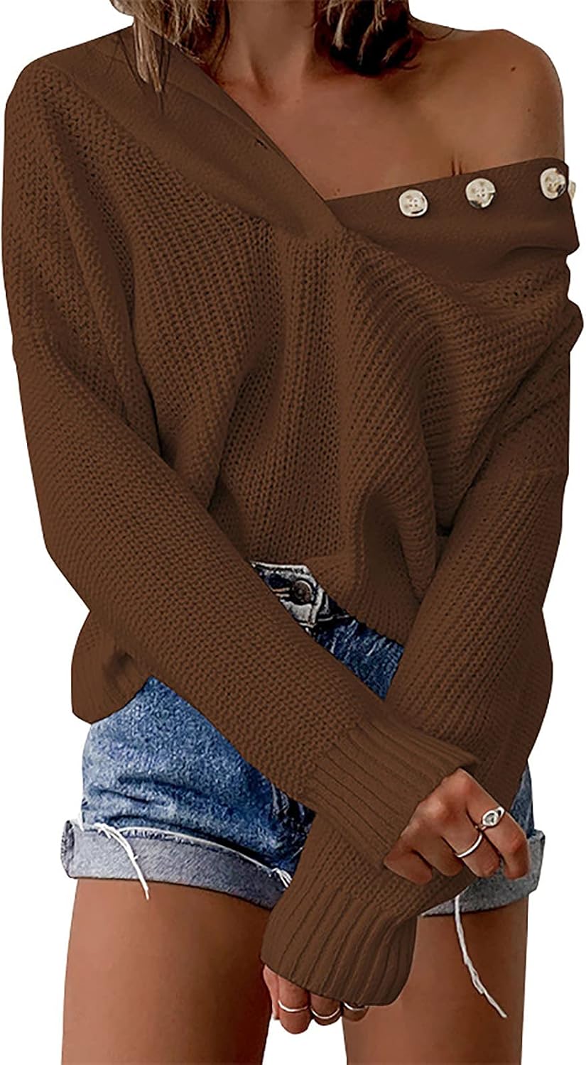 شراء hsTrjz-MaXj Knitted Hoodie for Women,Casual V Neck Sweater Button Pullover Basic Long Sleeve Sweatshirt,Off The Shoulder Shirt Tops اون لاين من امازون او نون وحراج hsTrjz-MaXj Knitted Hoodie for Women,Casual V Neck Sweater Button Pullover Basic Long Sleeve Sweatshirt,Off The Shoulder Shirt Tops
