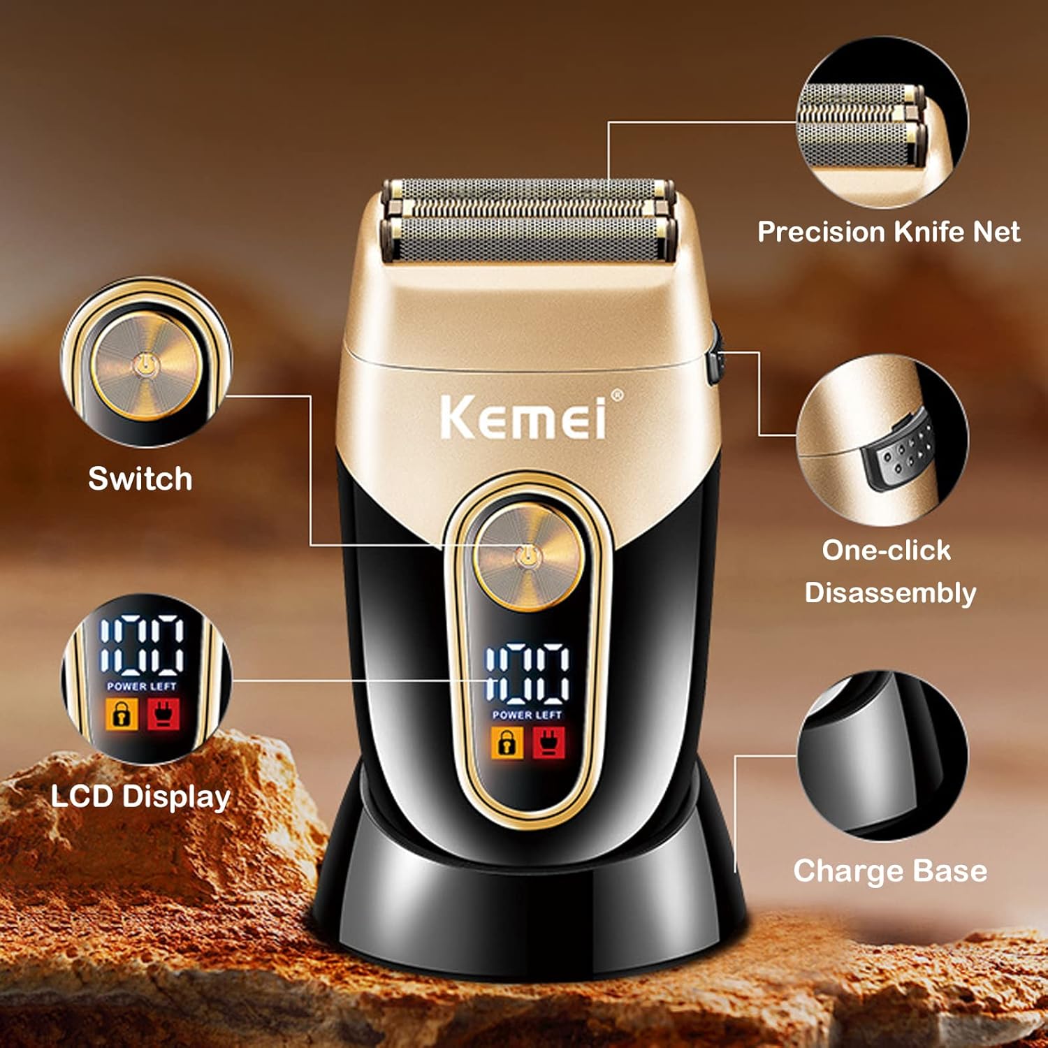 KEMEI Electric Shavers for Men, Cordless Foil Professional Barber Shavers, Reciprocating Twin Blade Razor Rechargeable Precision Beard Bald Head Trimmer with Display