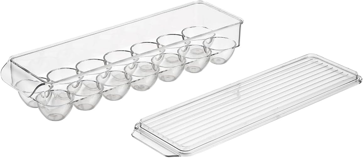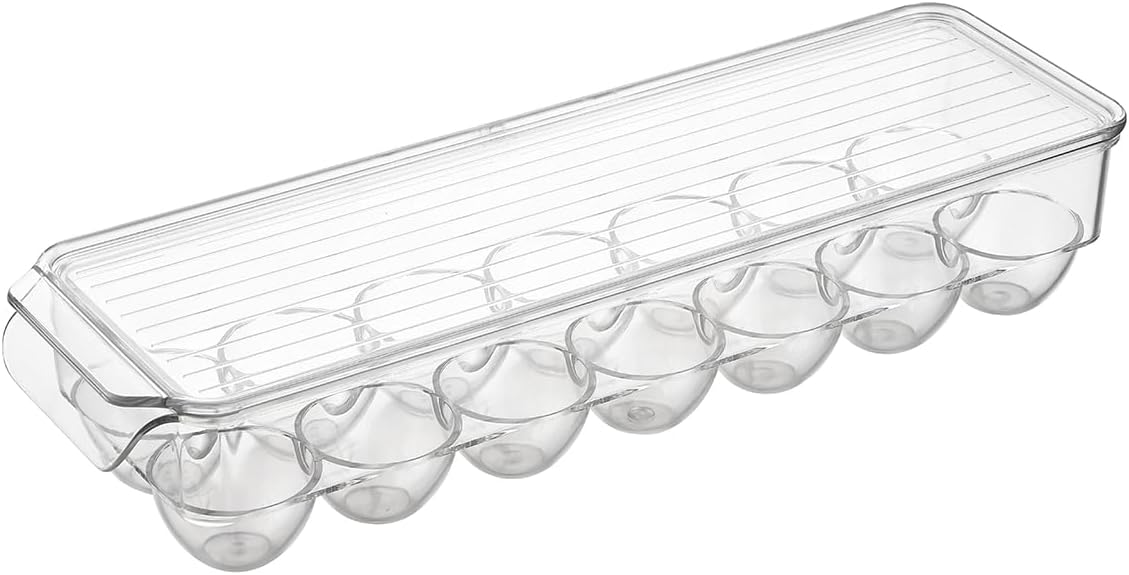 Lawazim Egg Holder for Fridge – Clear Plastic Egg Storage Container with Lid, 14-Egg Capacity, and BPA-Free Stackable Design – for Refrigerator Organization, Meal Prep, and Small Kitchens