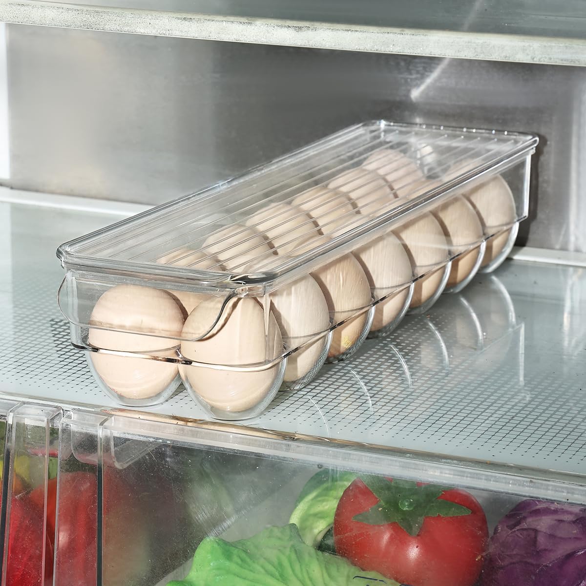 🧊 [Clear Design] Transparent body provides full visibility of contents, making it easy to track egg quantity without opening the container.