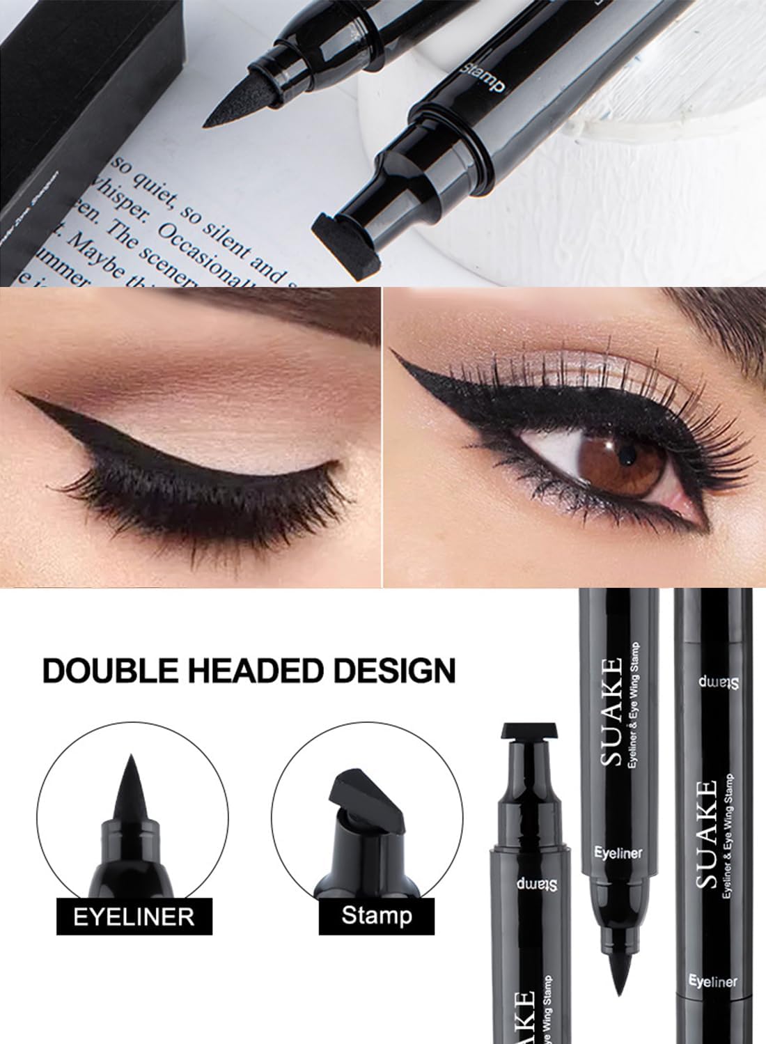 【Ingenious Design】The stamp pen end allows for easy stamping at the eye’s end, making it simple to draw exquisite eyeliner. With soft strokes and precise, natural outlines, the double-ended design helps you quickly create thick black eyeliner for a dramatic effect.