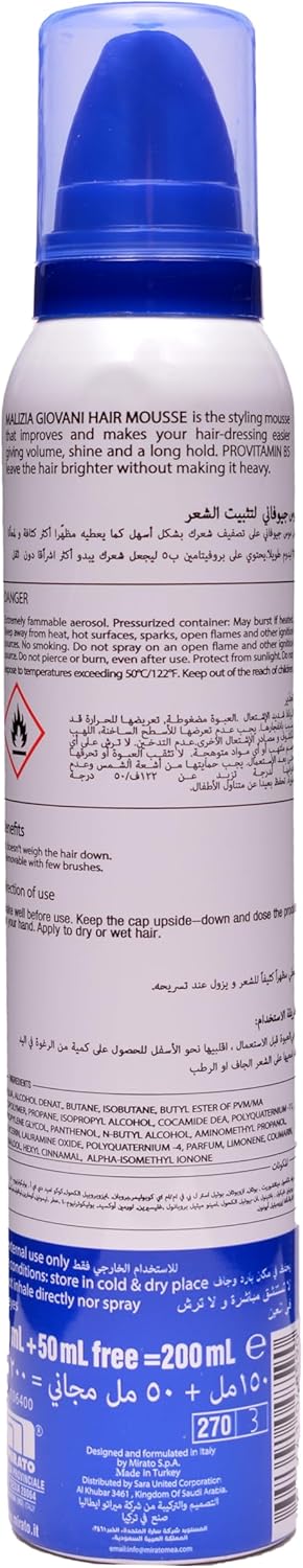 شراء Malizia Giovani Extra Strong Hold Hair Mousse 200 ml اون لاين من امازون او نون Malizia Giovani Extra Strong Hold Hair Mousse 200 ml