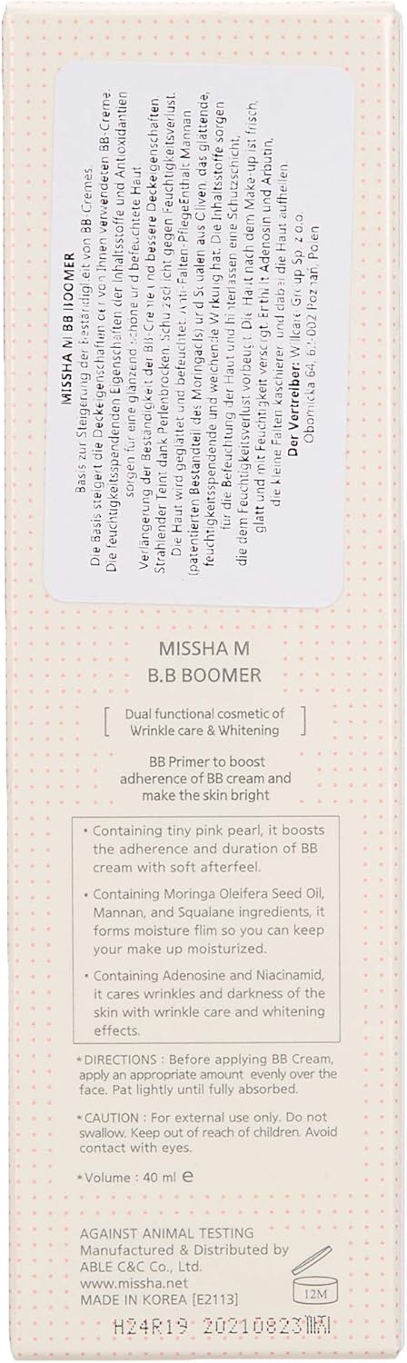 Discover the magic of MISSHA M B.B Boomer, an exclusive product from MISSHA, a brand renowned for its commitment to beauty and skincare. This 40 ml primer, specially designed for the international market, is your secret to radiant skin perfectly prepped for your favorite BB cream application. With a unique formula, MISSHA M B.B Boomer is more than just another step in your beauty routine; it’s an investment in the health and luminosity of your skin. Its lightweight, fast-absorbing texture creates the ideal base for any BB makeup, ensuring even and long-lasting application. This neutral-toned product suits all skin tones, providing a natural and flawless appearance. Hydration is key in skincare, and MISSHA M B.B Boomer understands that. Its composition is designed to nourish your skin, leaving it soft, flexible, and glowing with healthy radiance all day long. It’s the perfect ally for those who want to improve the adherence and finish of their BB makeup while deeply caring for their skin. With a rich history of developing innovative, high-quality skincare products, MISSHA presents this primer as the perfect solution for enhancing your skin’s natural beauty. Ideal for daily use, MISSHA M B.B Boomer is the perfect complement to your beauty routine, ensuring your skin is always prepped and radiant.