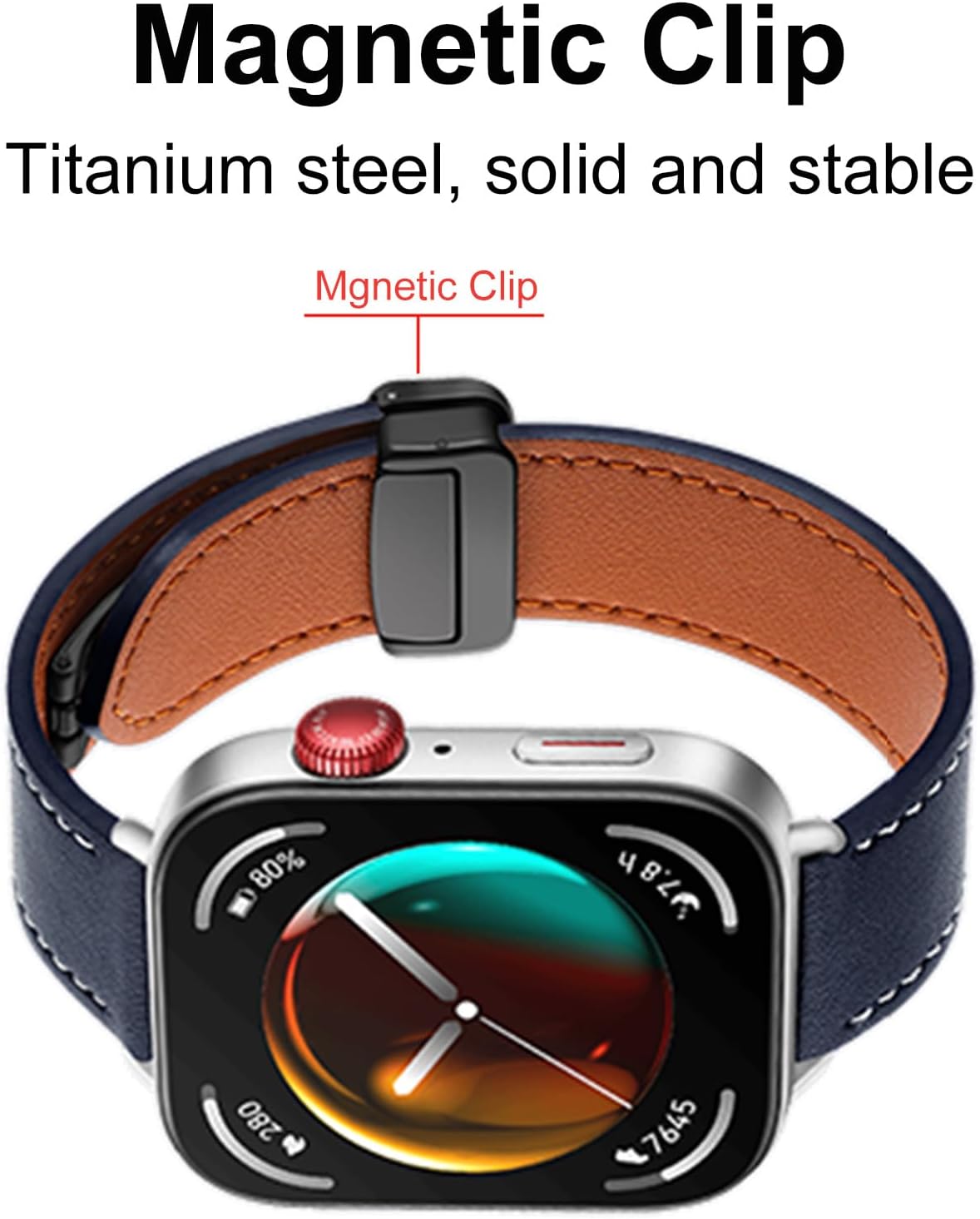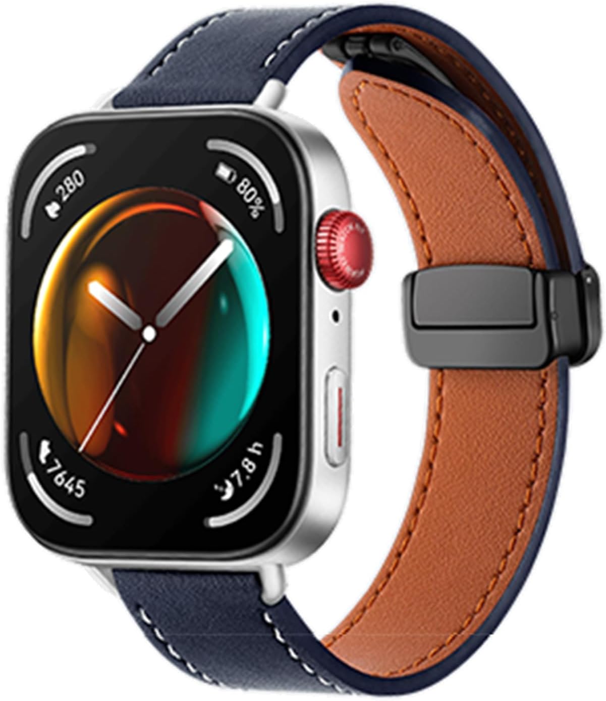 Newentor Strap Compatible with Huawei Watch Fit 4/Fit 4 Pro/3 2024, Magnetic D-Buckle Breathable Genuine Leather Watch Strap