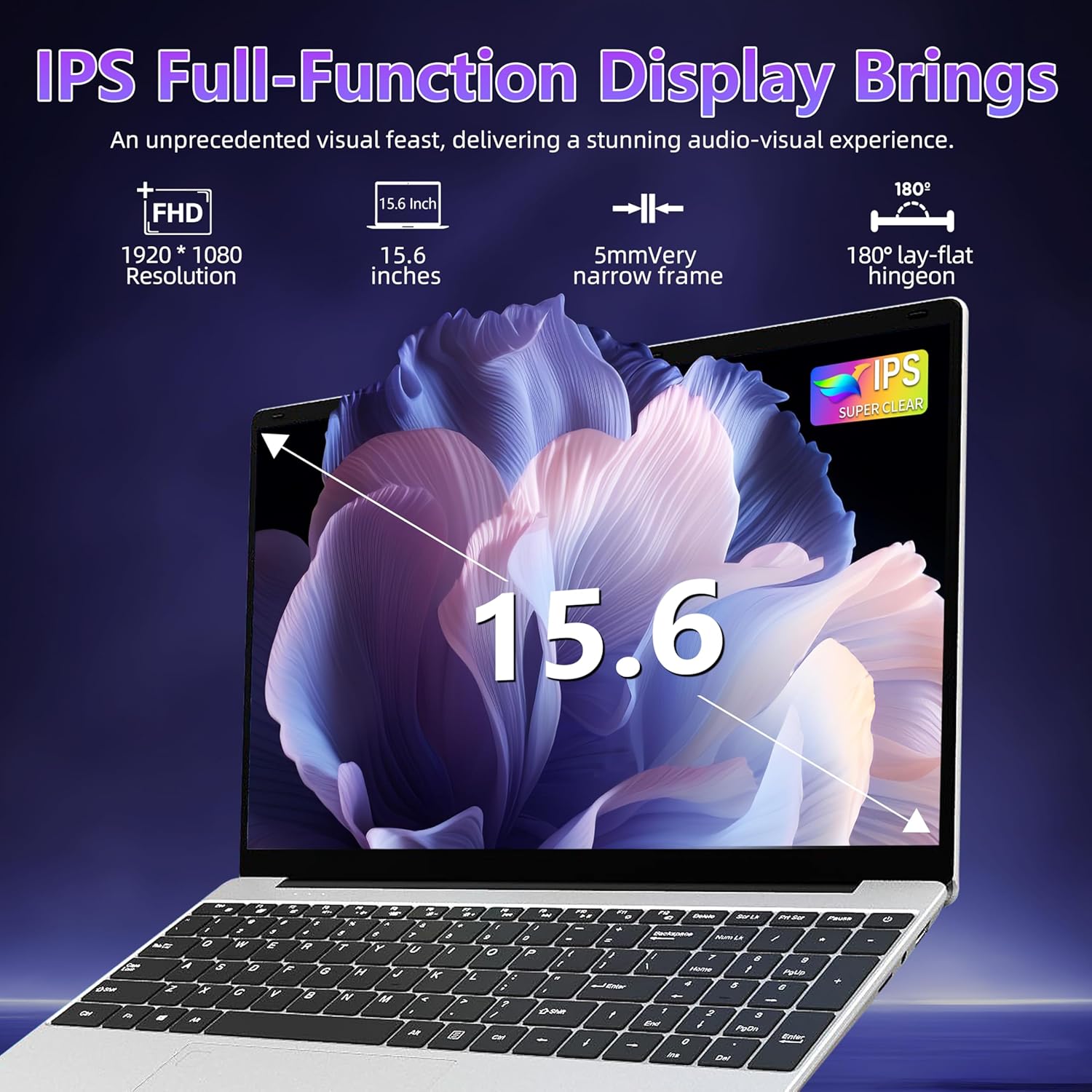 15.6” Full HD IPS Display: The 1920×1080 IPS screen with 90% screen ratio offers vivid visuals and reduced eye strain with anti-blue light technology. Slim bezels and 16:9 aspect ratio enhance both work and entertainment. (Note: camera located at lower left corner)