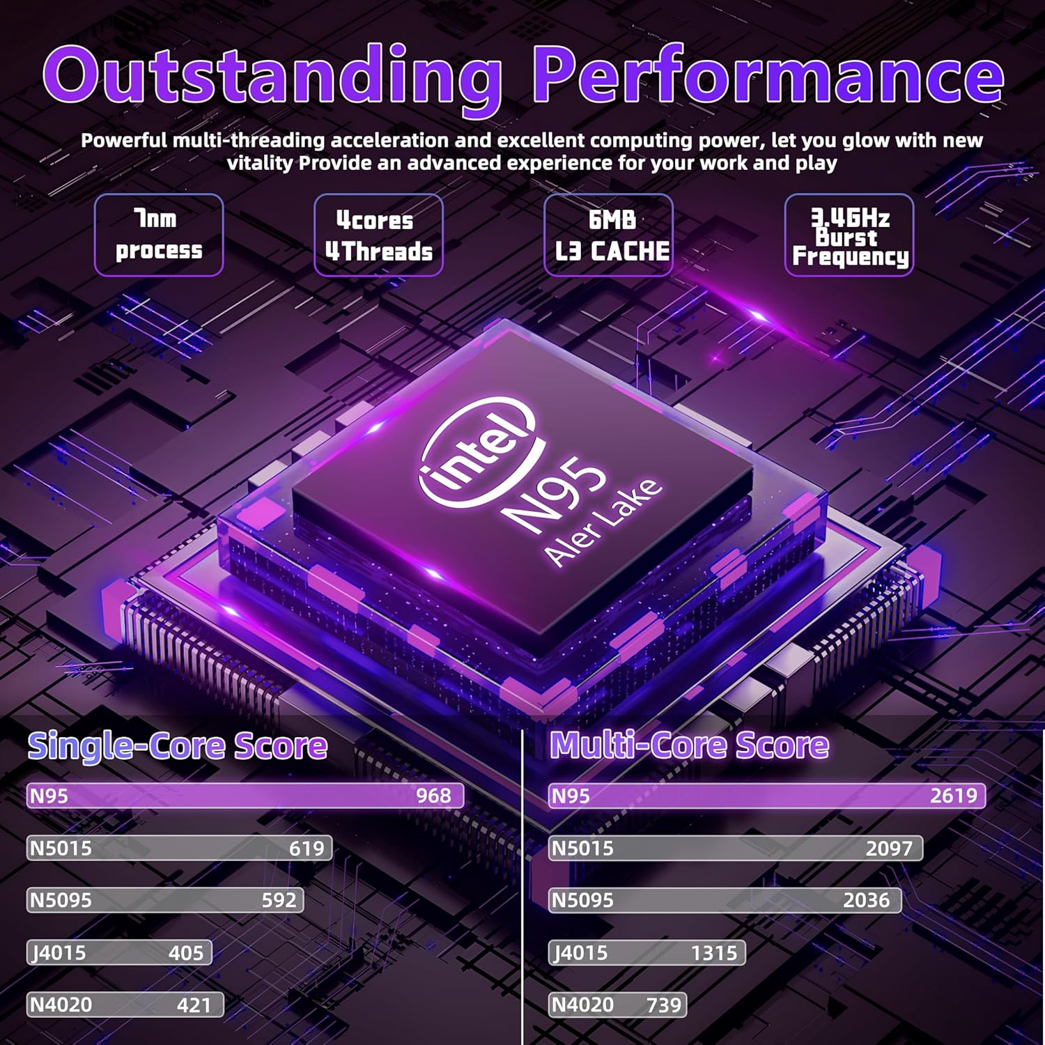 Powerful N95 Quad-Core CPU: Equipped with the fast Celeron N95 processor (1.7GHz–3.4GHz) and UHD Graphics 600, this laptop delivers smooth multitasking and stable performance. Stay connected anytime with reliable 5G Wi-Fi and BT 4.2. Perfect for those looking for high-performance laptops