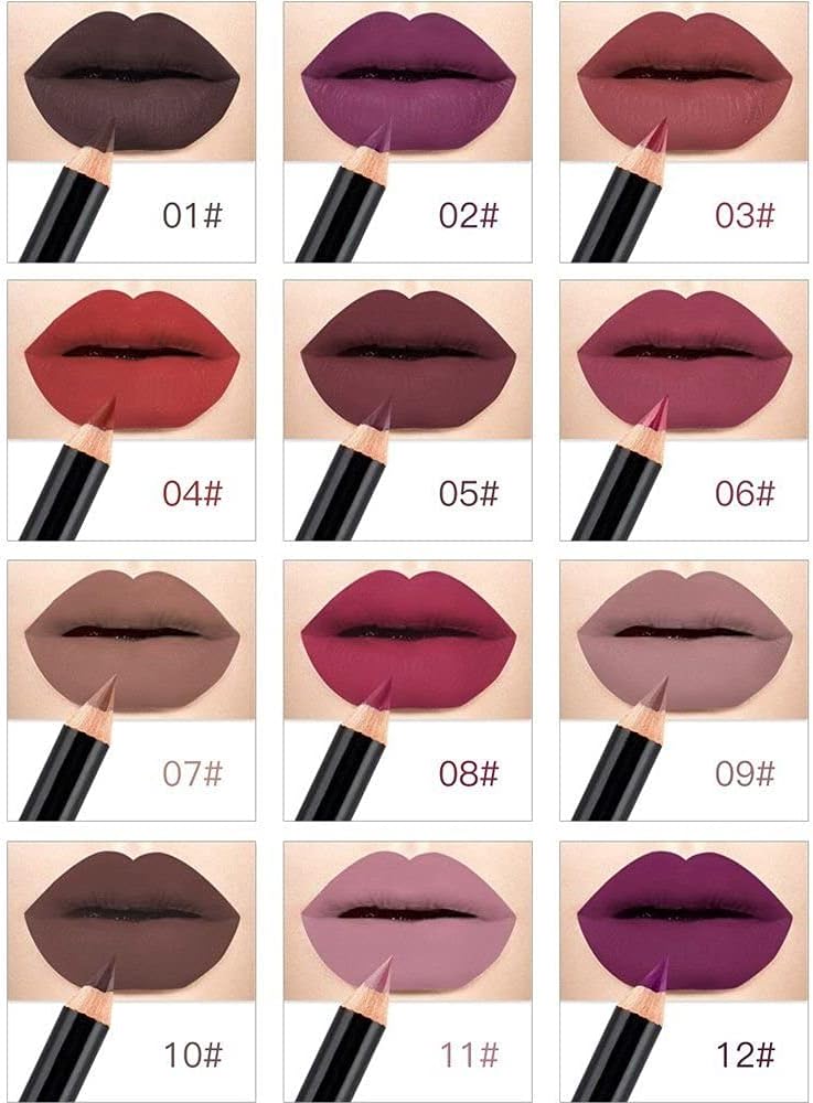 12 Colors Lip Pencil set contains 12 abundant colors never repeat such as nude,brown,purple,rose red,red,orange,wine etc. Lip Pencil is SOFT AND SMOOTH,easy to draw clear lip liner