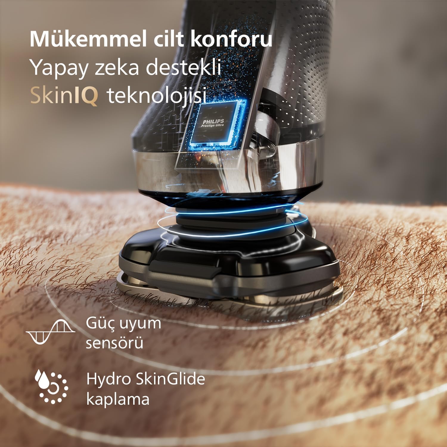 SkinIQ technology captures shaving parameters such as pressure and movement and automatically adjusts cutting performance.