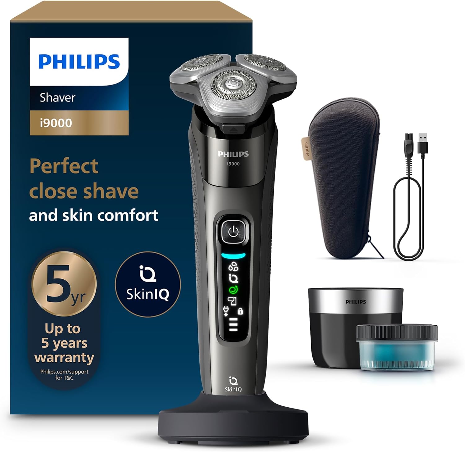 Philips Razor i9000, Electric Wet and Dry Shaver for Men with Integrated Trimmer, Dark Grey, Cleaning Station, Charging Station and Travel Case (Model X9002/30)