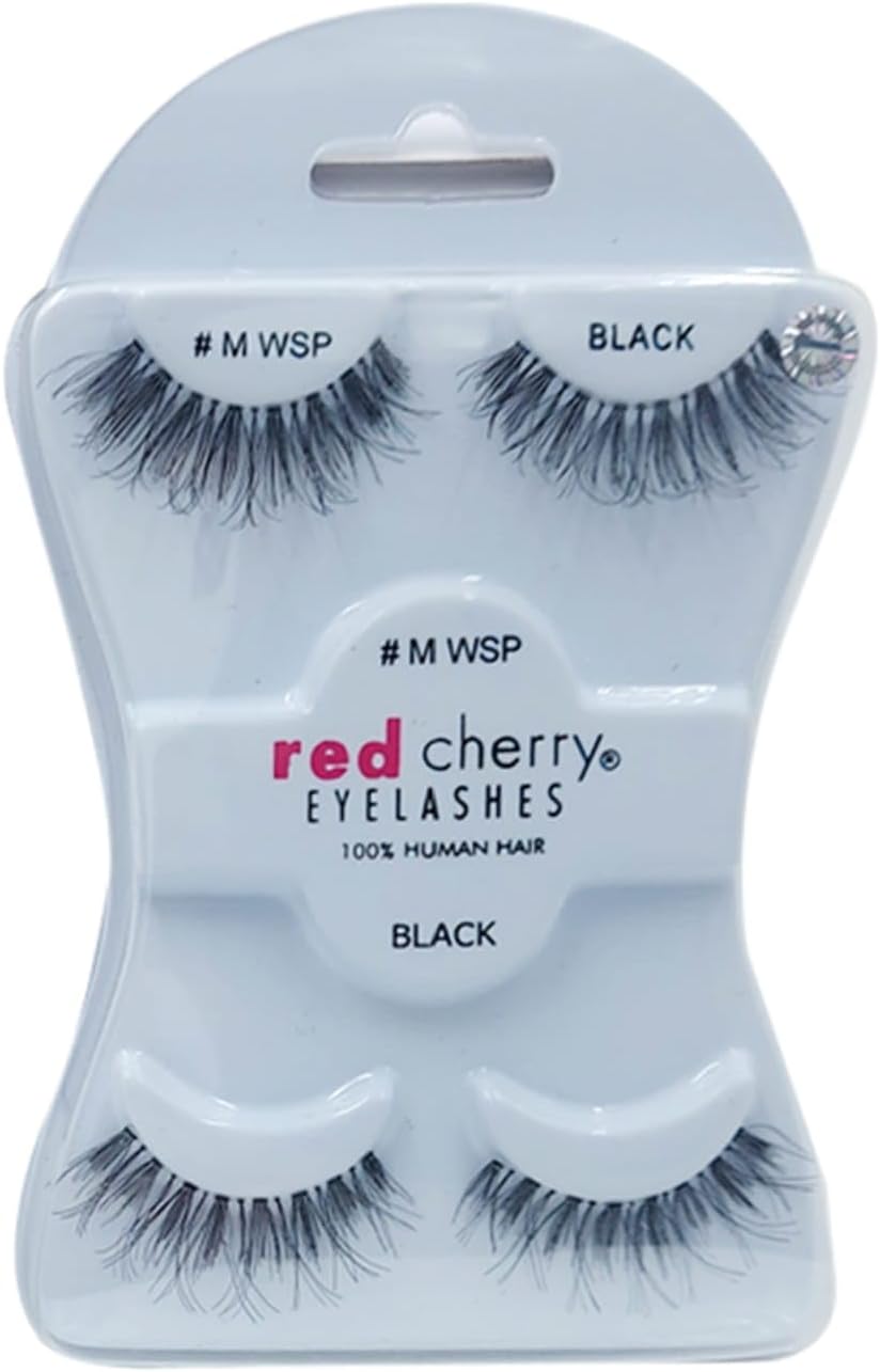Red Cherry False Eyelashes No. M WSP adds volume, length and definition to the eyes. Used in makeup looks for special occasions, such as weddings, parties and photoshoots. Enhance the overall look without the need for mascara. Perfect gift for a mother, sister or girlfriend. Crafted to feel light on the lids. The pack contains 2 pairs of eyelashes.